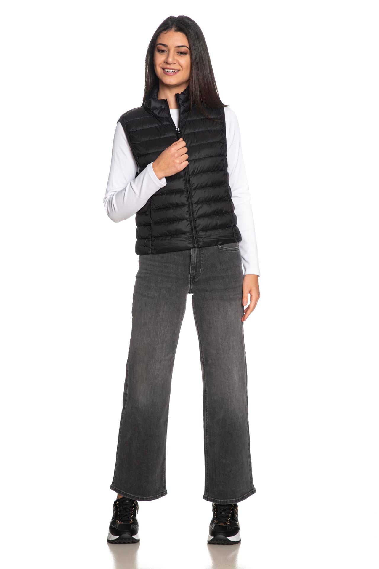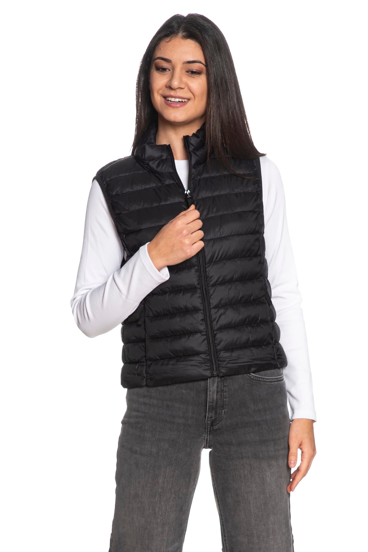 Smanicato Only Tahia Lw Quilted Waistcoat da donna in tessuto trapuntato di nylon, con leggera imbottitura sintetica, collo alto, chiusura centrale e tasche laterali a filo con zip, giromaniche nastrati elastici e fondo dritto