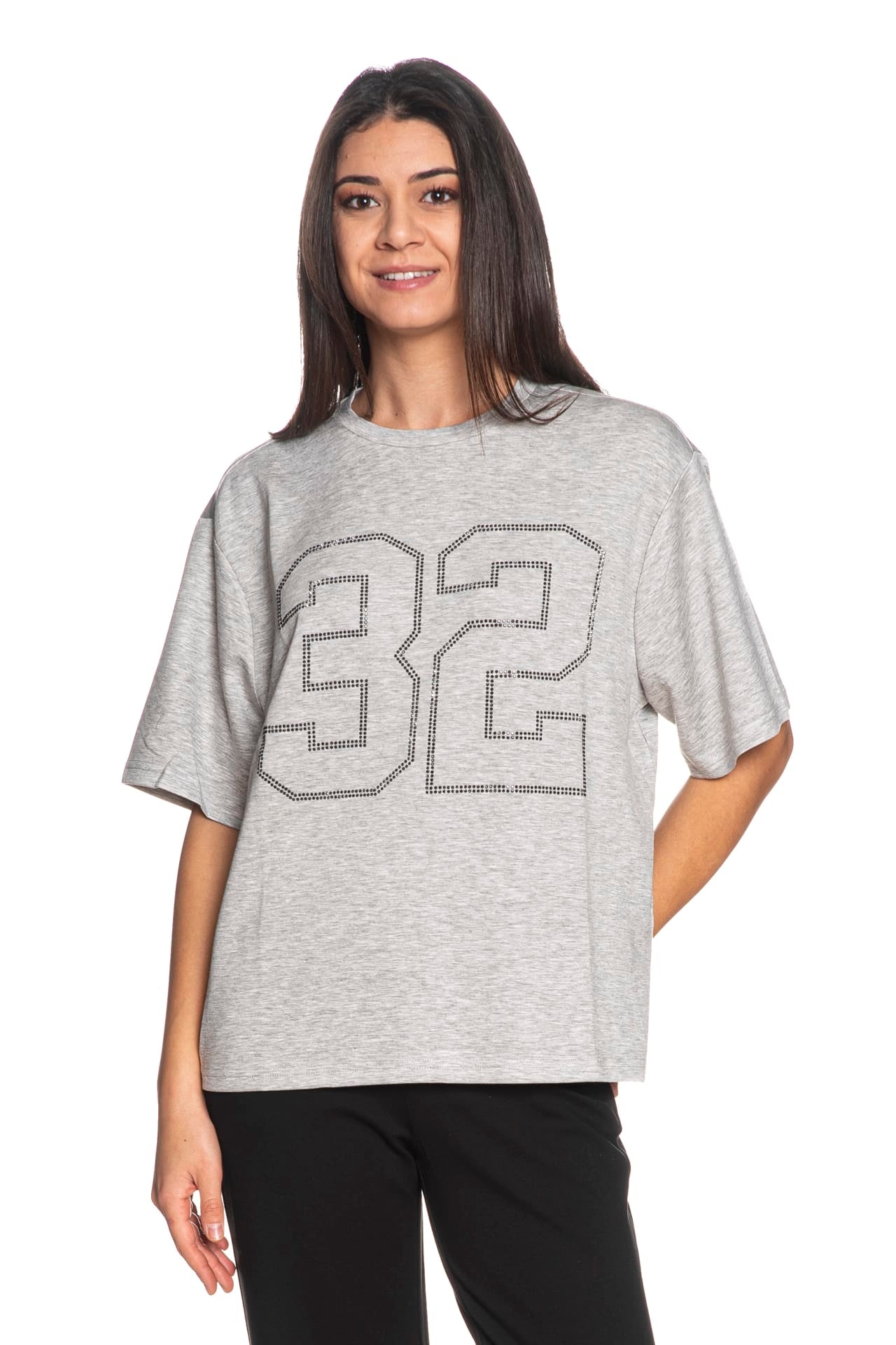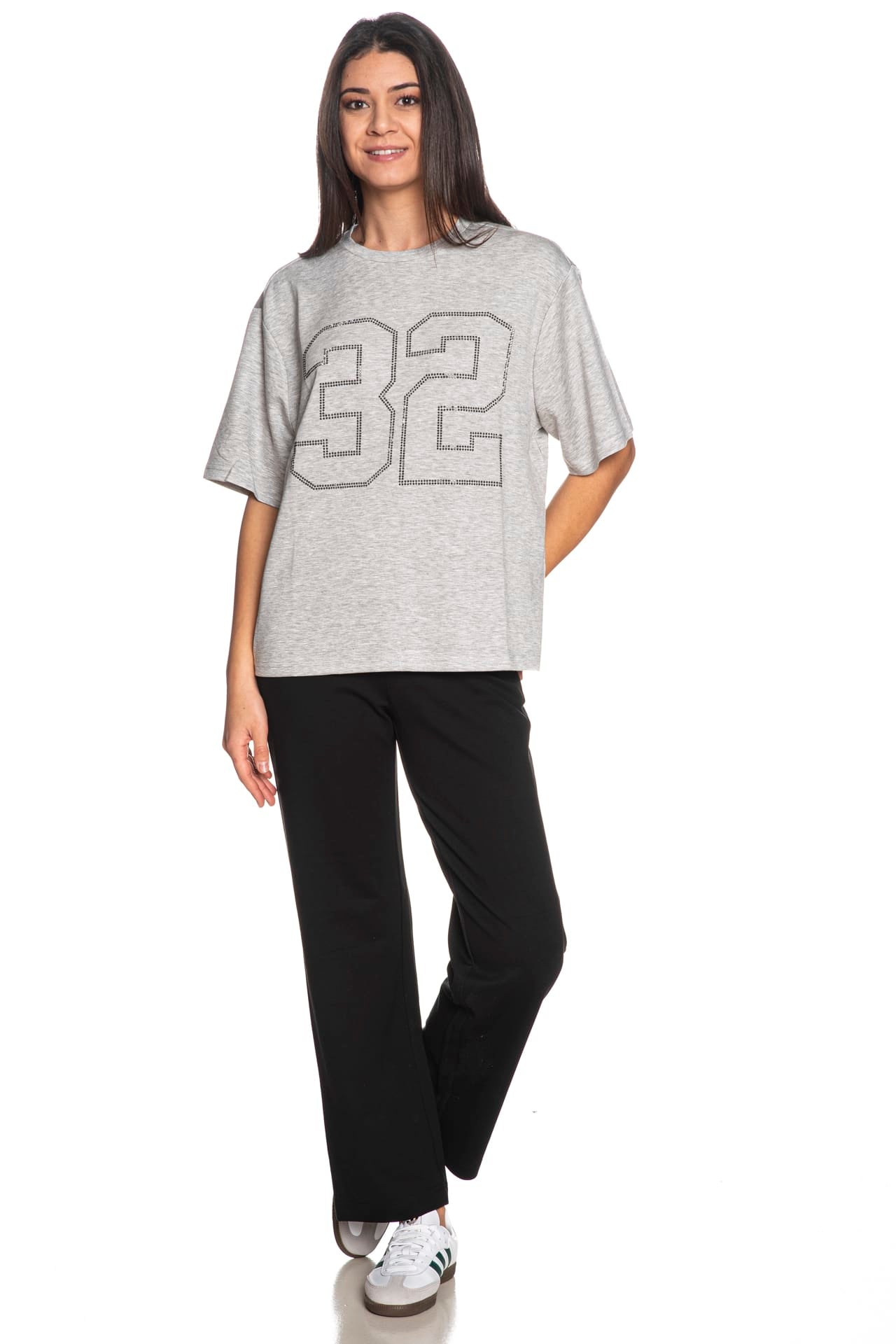 T shirt Jdy Nila Ss Tee da donna in tessuto stretch di misto poliestere e viscosa, oversize fit girocollo a manica corta, con macro numero outline in strass a contrasto colore