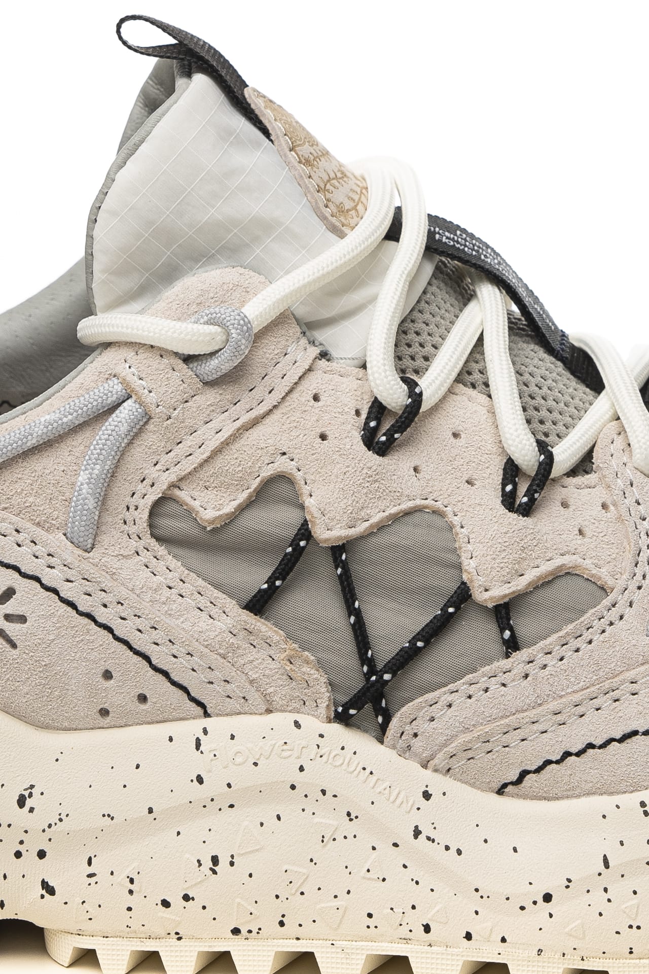 Scarpa Flower Mountain Yamabushi Unisex dal design sportivo realizzata con tecnologia Microban che previene la formazione di muffe e allontana i batteri rendendo la calzatura durevole nel tempo, modello sneaker stile trekking con tomaia in tessuto ripstop e dettagli in suede scamosciata in tono colore, allacciatura mix ghillie mediante passanti e occhielli a lacci tubolari, fettuccia su linguetta e tallone per facilitare la calzata, soletta interna in sughero naturale antibatterico e fondo sagomato in phylon puntinato ultra leggero con battistrada dentellato