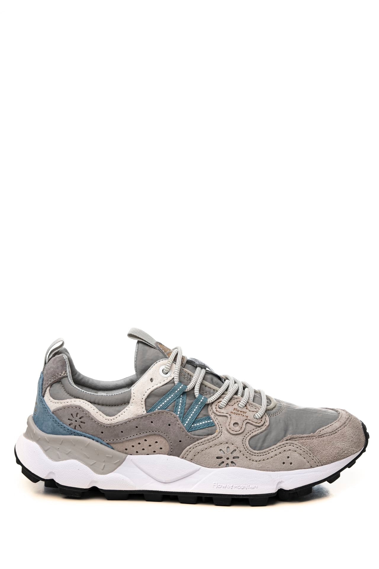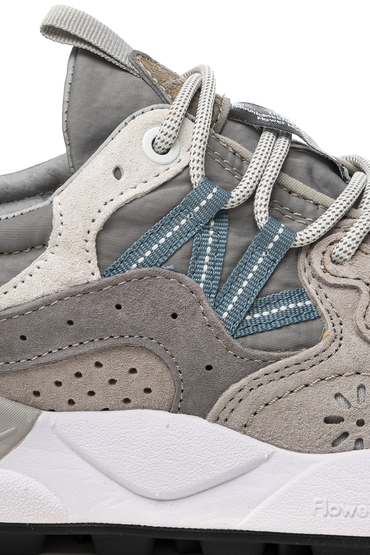 Scarpa Flower Mountain Yamano 3 Unisex dal design sportivo realizzata con tecnologia Microban che previene la formazione di muffe e allontana i batteri rendendo la calzatura durevole nel tempo, modello sneaker stile trekking con tomaia in nylon e dettagli in suede liscia e traforata scamosciata multicolor, allacciatura ghillie mediante passanti anzichè occhielli a lacci tubolari, occhielli rinforzati, fettuccia su linguetta e tallone per facilitare la calzata, soletta interna in sughero naturale antibatterico e fondo sagomato in gomma ultra leggera con battistrada dentellato