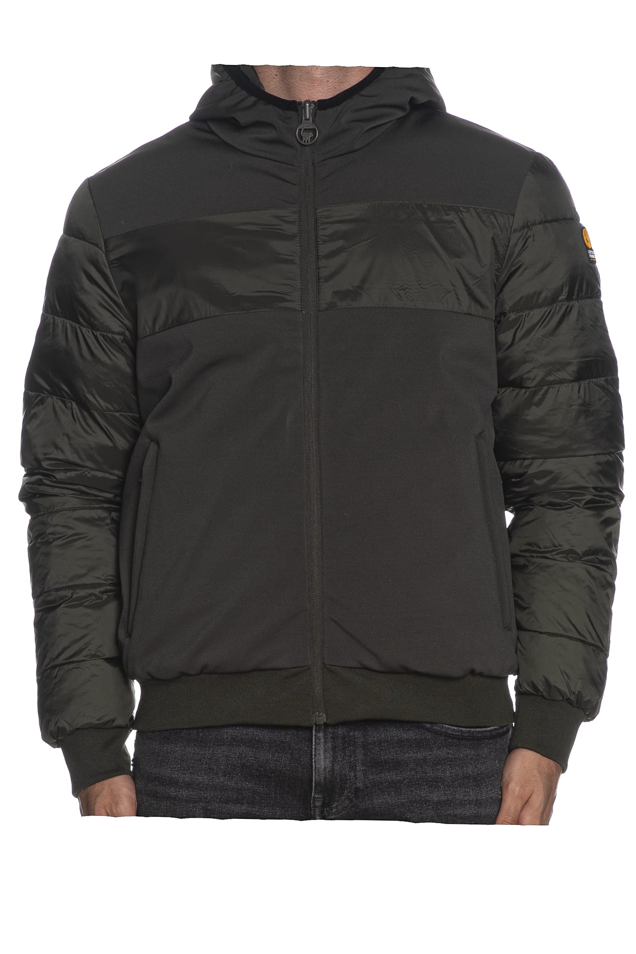Giubbotto Ciesse Piumini Active Ridley Hoodie verde militare in softshell idrorepellente reversibile con cappuccio chiusura zip imbottitura sintetica logo gommato sulla manica e cannolè a costine