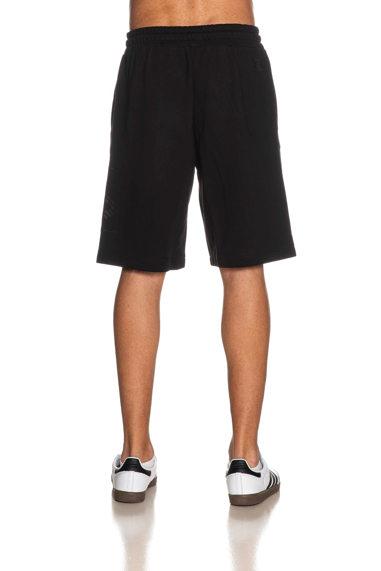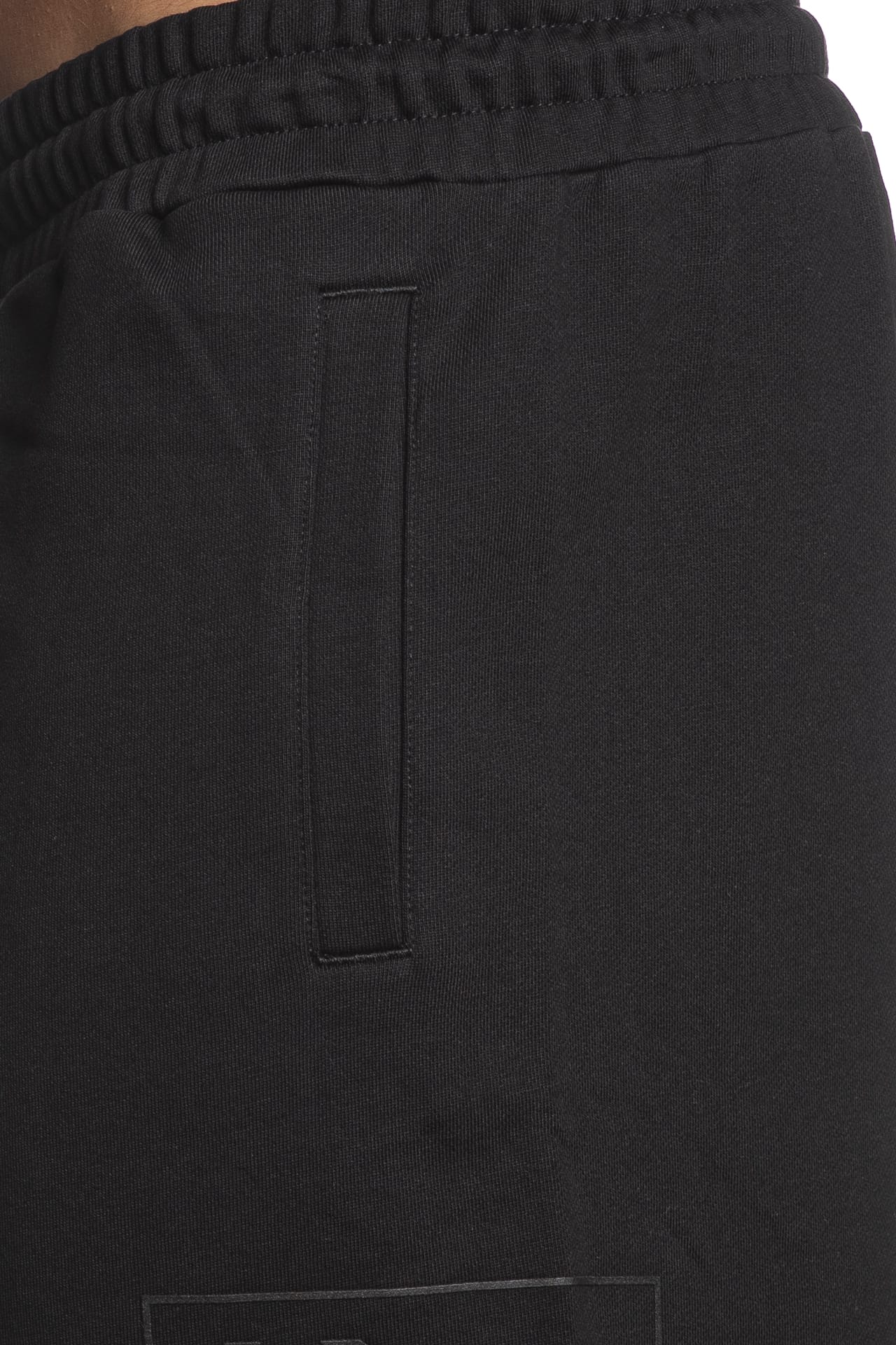Bermuda EA7 Train Lg Series Tt Rub Ptd da uomo in tessuto garzato di cotone, con elastico e coulisse foderata regolabile tramite cordino in vita, tasche a filo e maxi monogramma lettering stampato gommato su una gamba
