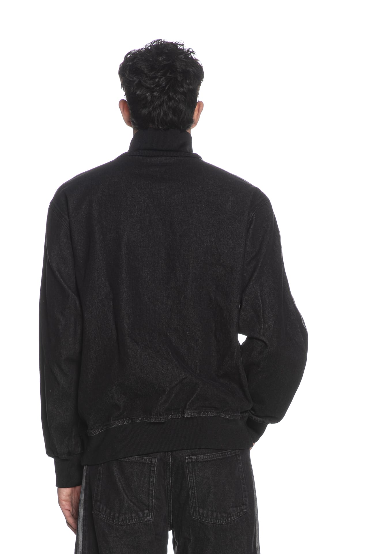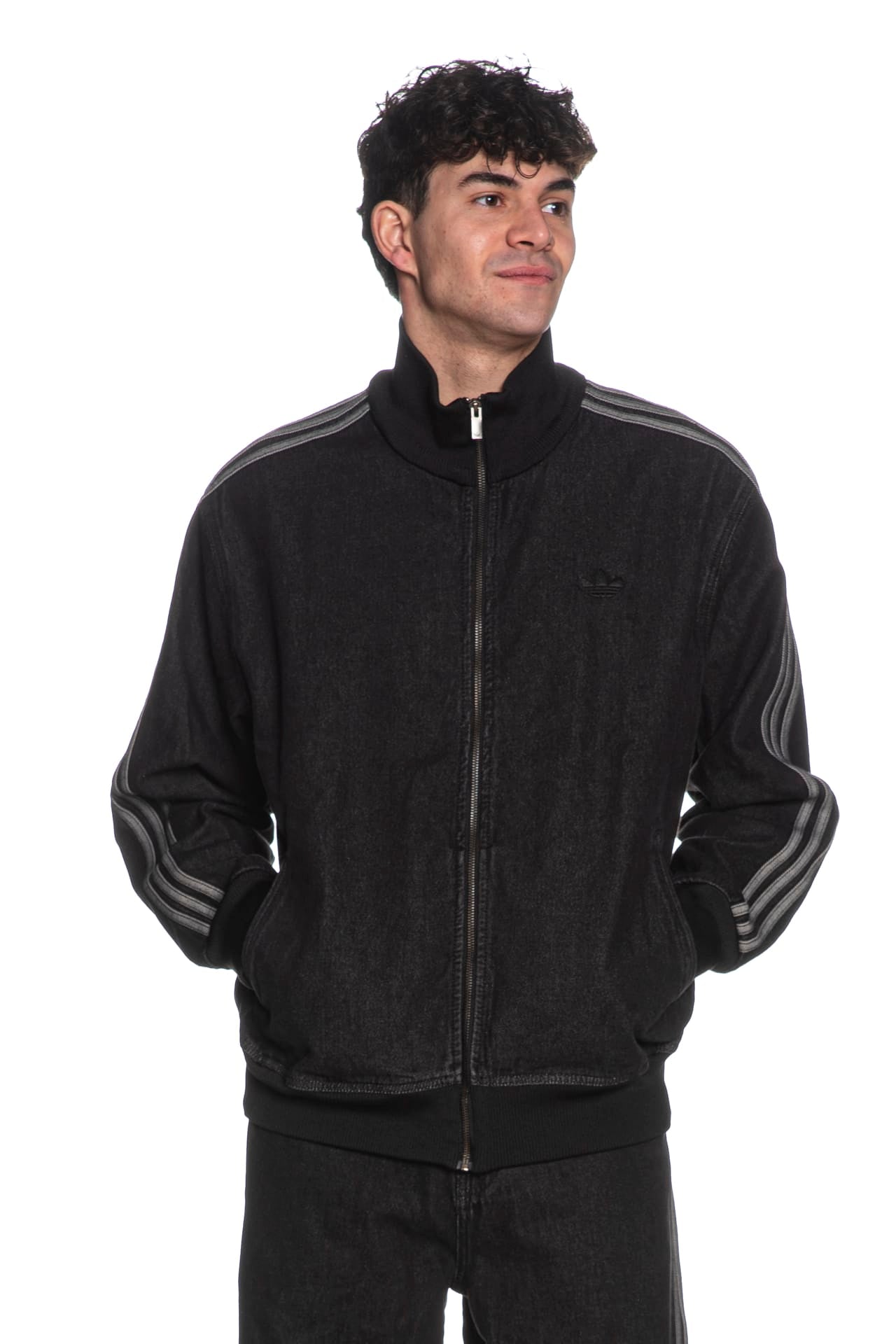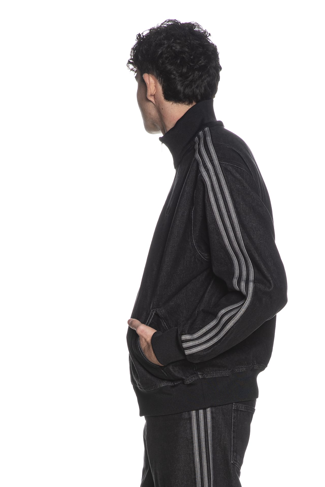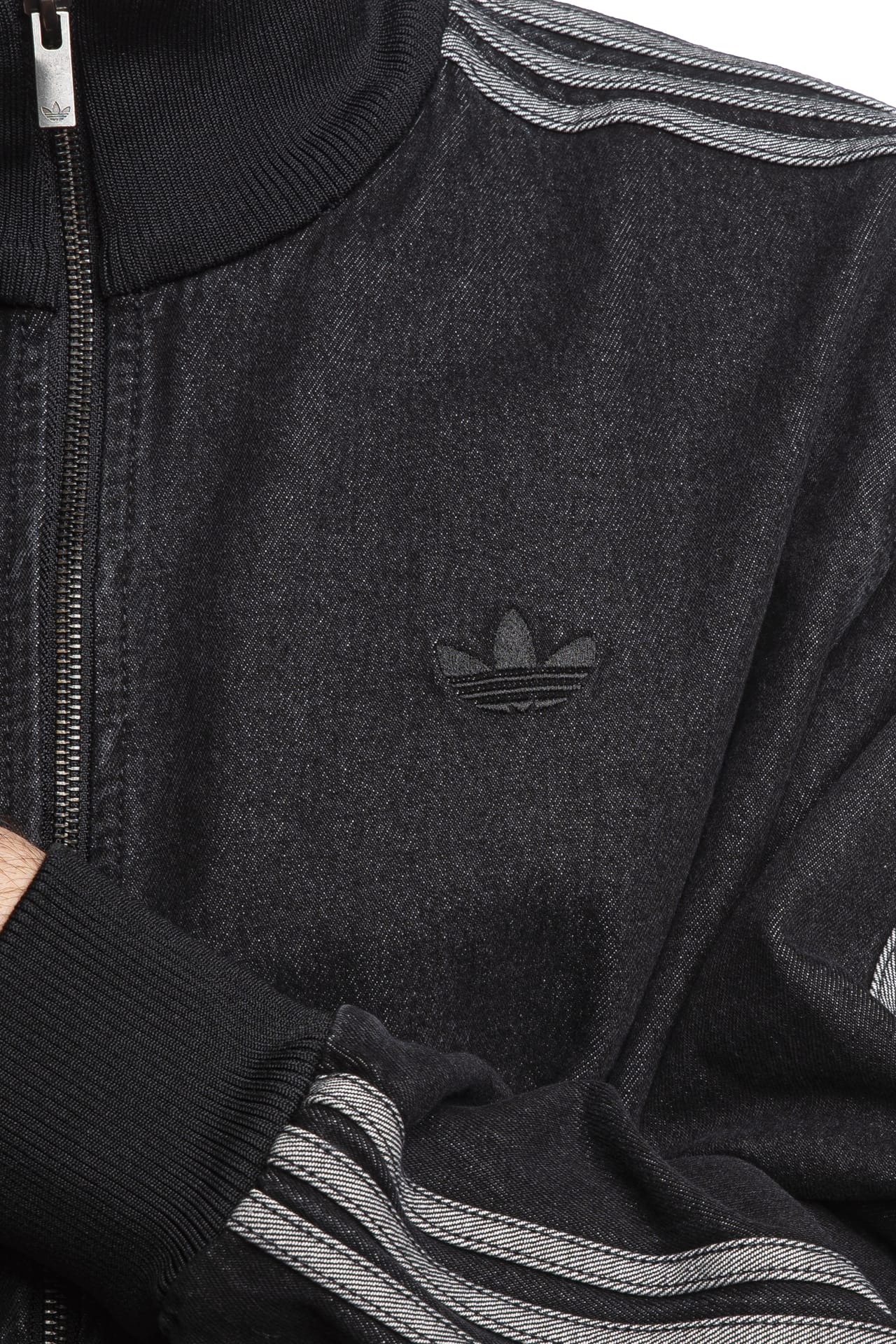 Felpa Adidas Original Dnm Fb da uomo in denim di cotone sottoposto a trattamento per un aspetto vissuto, modello bomber loose fit, con inserti banda in tessuto sulla spalla leggermente scesa e sulle maniche lunghe, chiusura full zip centrale a vista, tasche a filo, logo ricamato sul petto, collo alto polsini e cannolè a costine