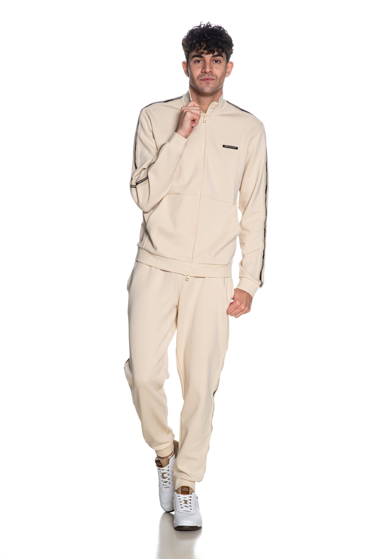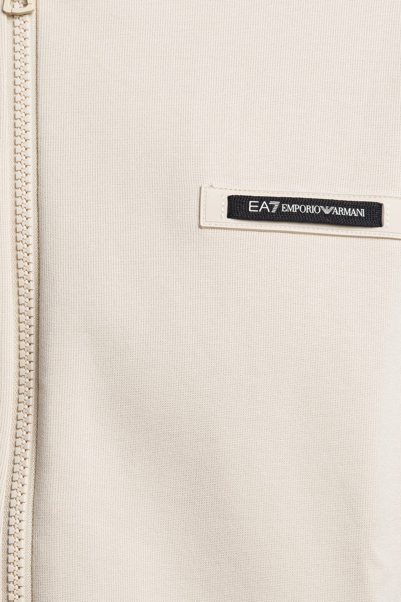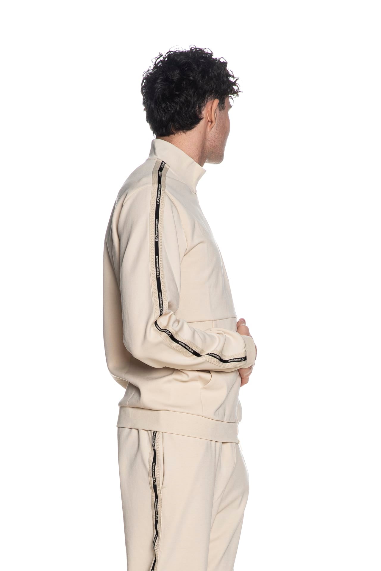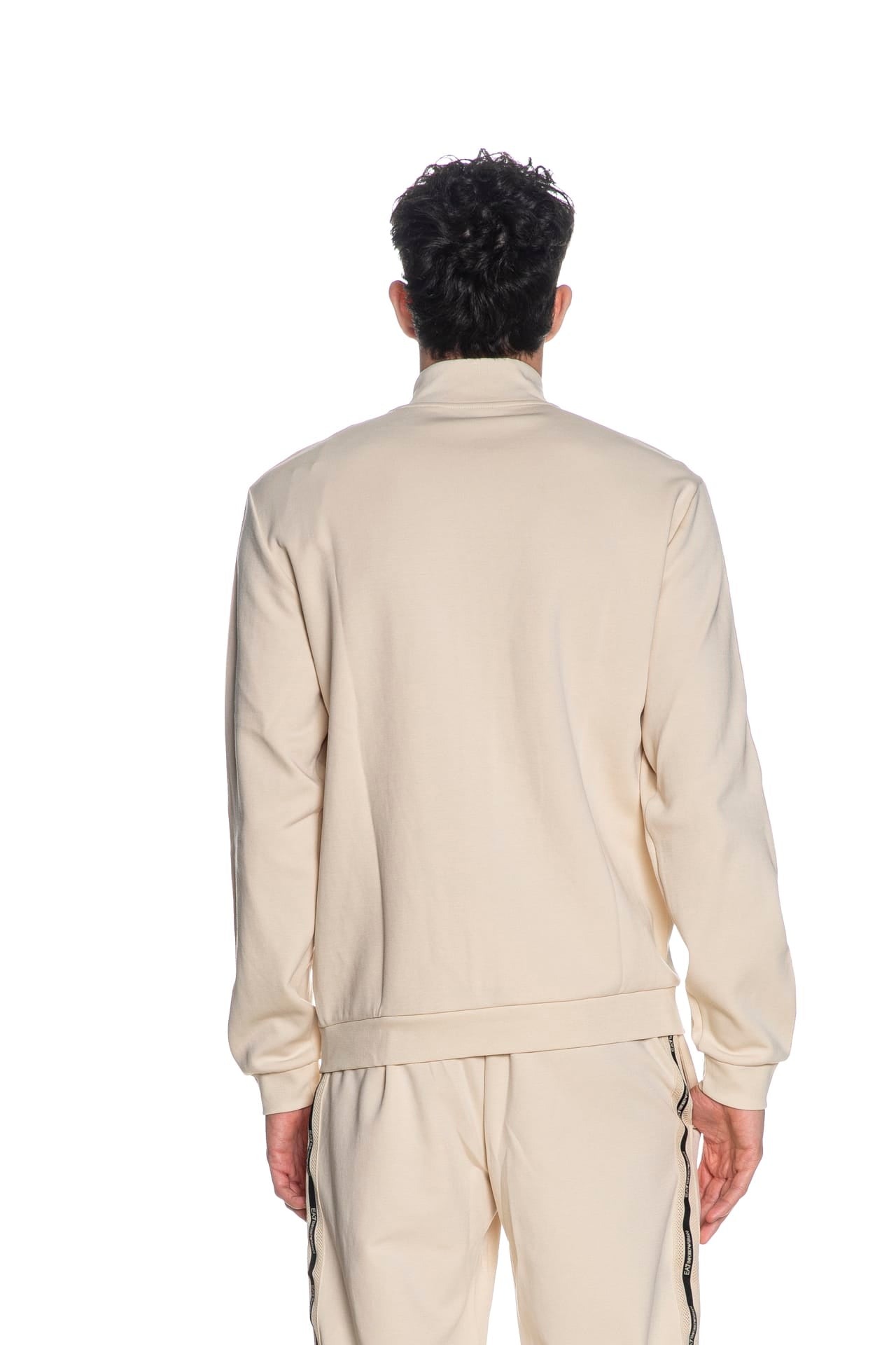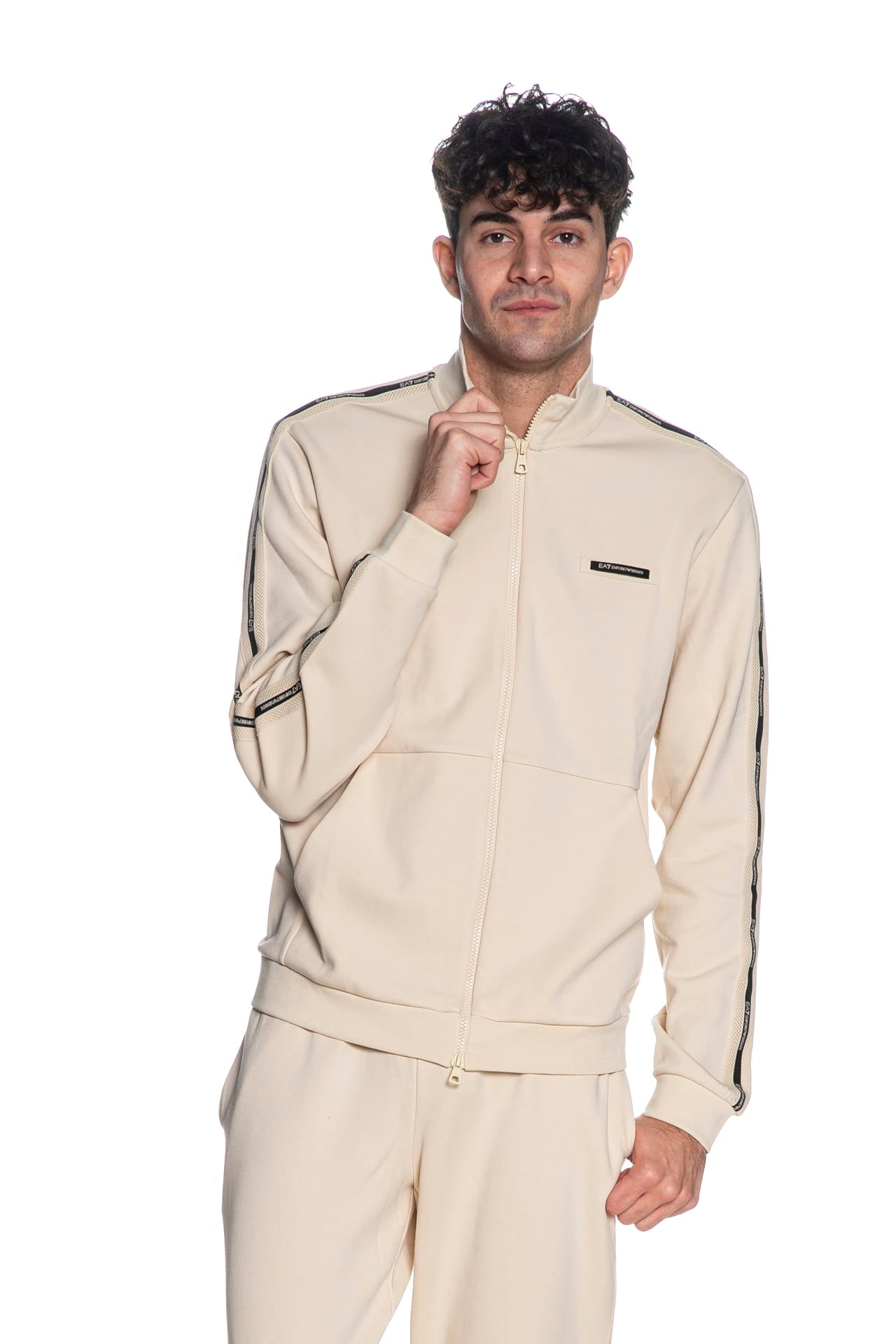 Felpa Ea7 Train Lg Series Tape Trim da uomo in interlock di misto cotone e poliestere, con collo alto, polsini e cannolè in maglia, etichetta patch gommata sul fondo, passamaneria logata a contrasto su spalla e manica lunga, chiusura centrale full zip a doppio cursore e tasche laterali a toppa