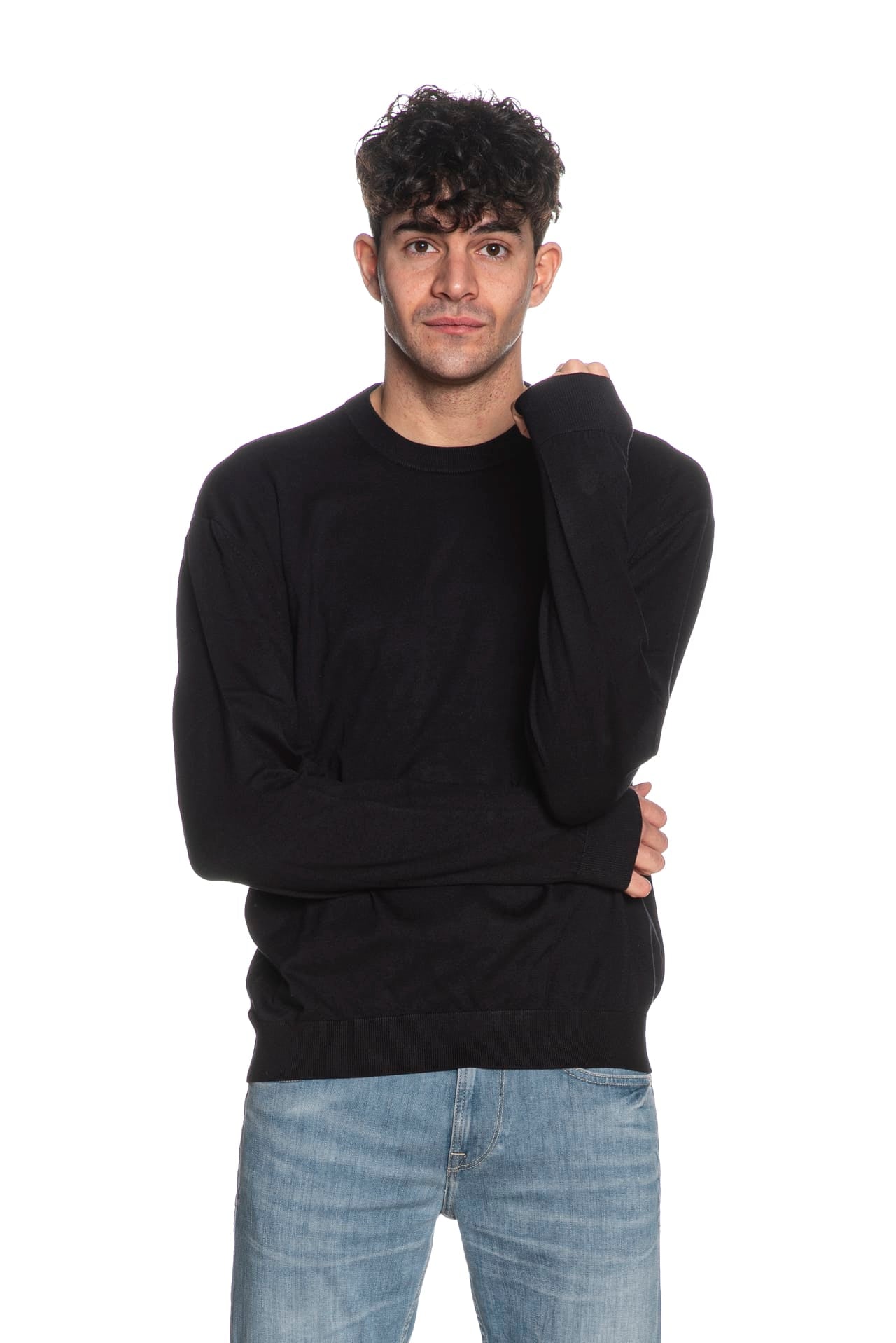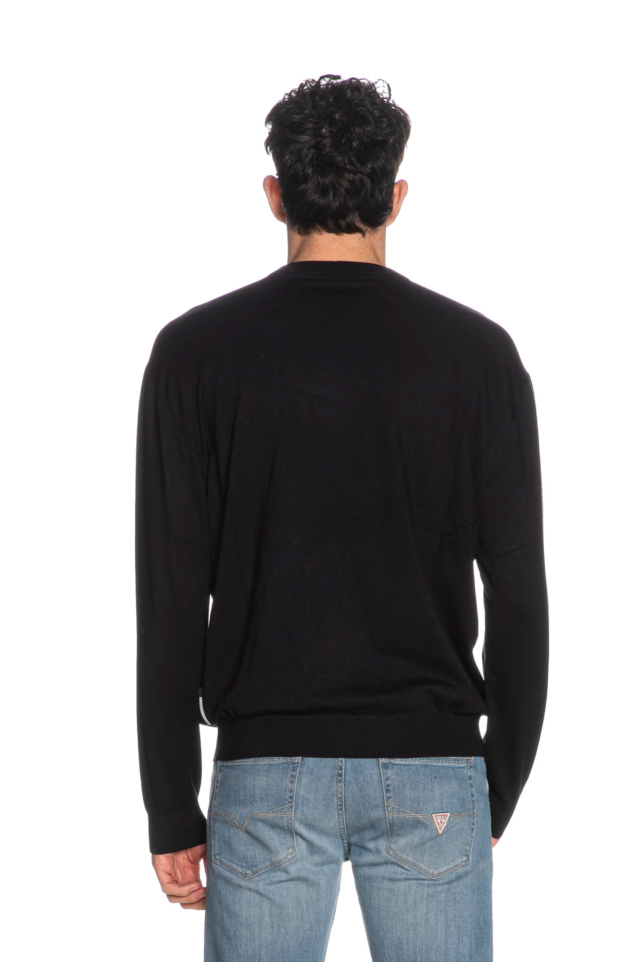 Maglia Armani Exchange Ecovi Sweater da uomo in filato rasato di viscosa ecologica certificata e poliammide, regular fit, con girocollo polsini e cannolè a costine e mini tag logo gommato applicato sul fondo