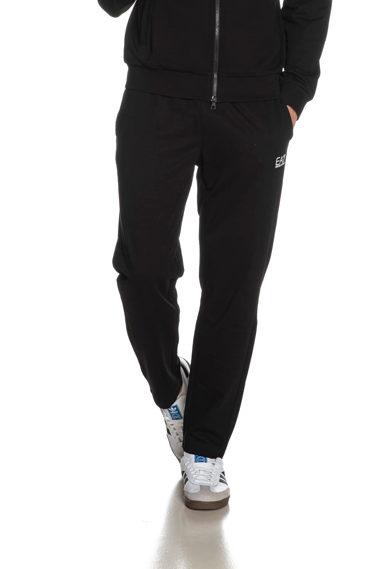 Pantalone Train Core Id No Cuff da uomo in tessuto garzato di cotone, modello jogger senza polsino, con elastico e coulisse interna in vita, tasche a filo, piccolo logo su una gamba e grafica posteriore in stampa gommata a contrasto