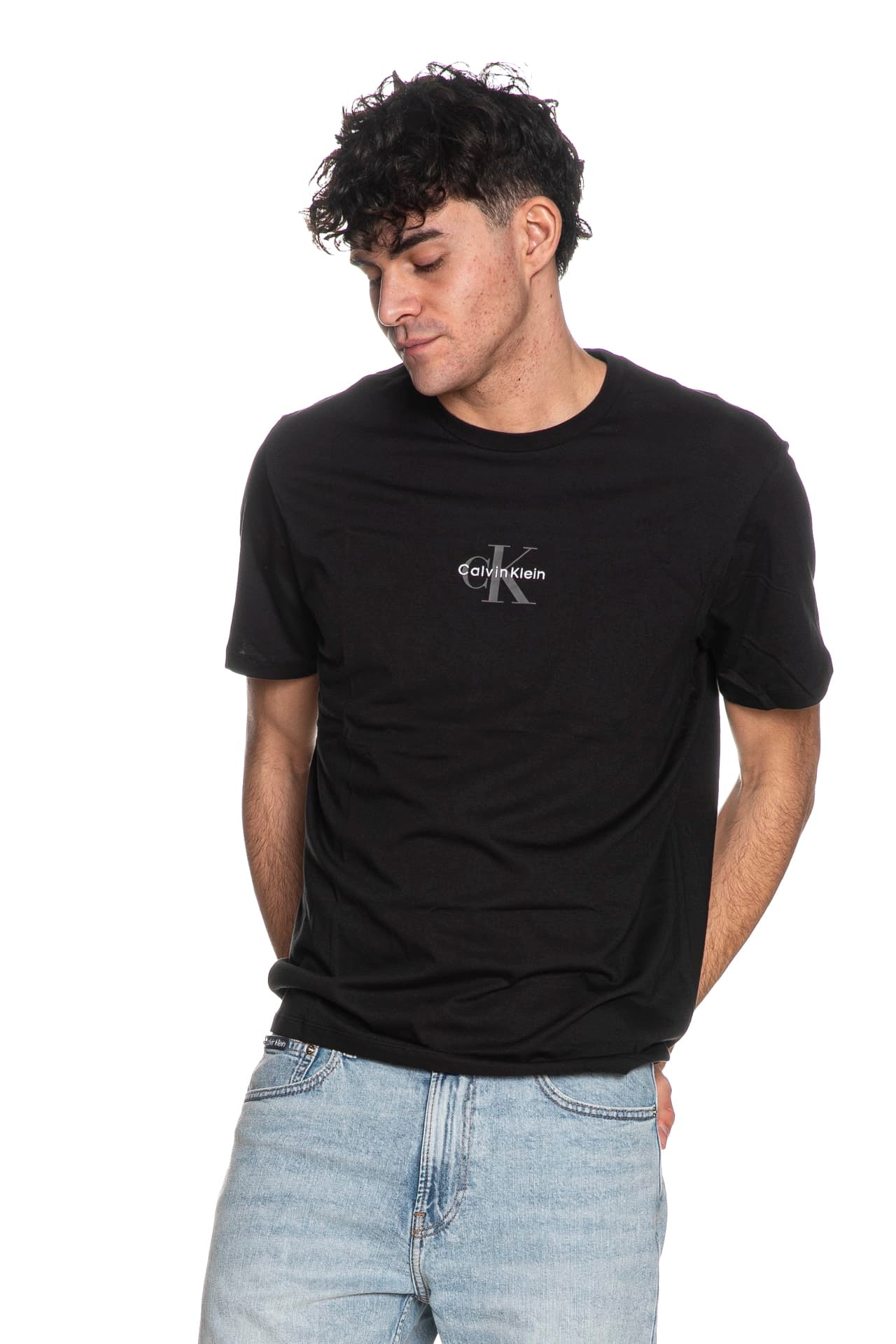 T Shirt Calvin Klein Ss Ck Emb Print Tee Da Uomo Nera