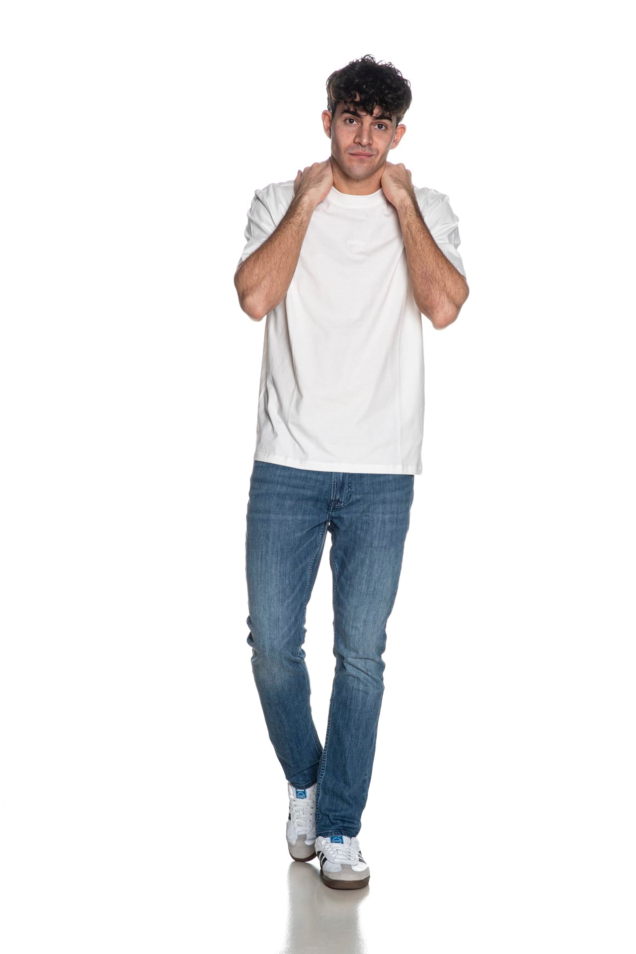 T shirt Guess Giano Ss da uomo in jersey, girocollo a manica corta, con piccolo logo a centro petto in stampa gommata tono su tono