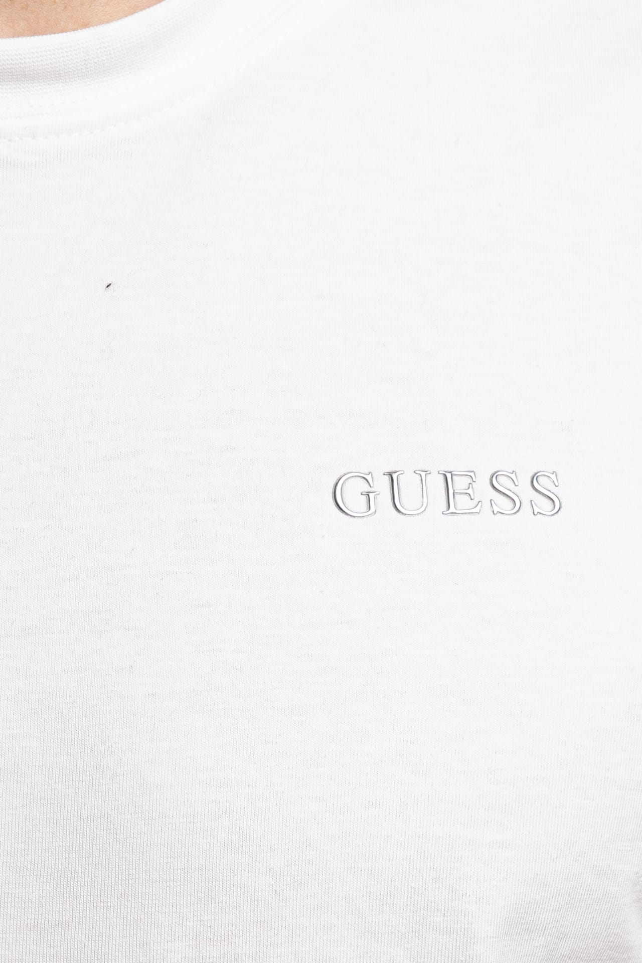 T shirt Guess Marzio Ss da uomo in jersey, girocollo a manica corta, con piccolo logo lettering sul petto in stampa gommata a rilievo metallizzata silver
