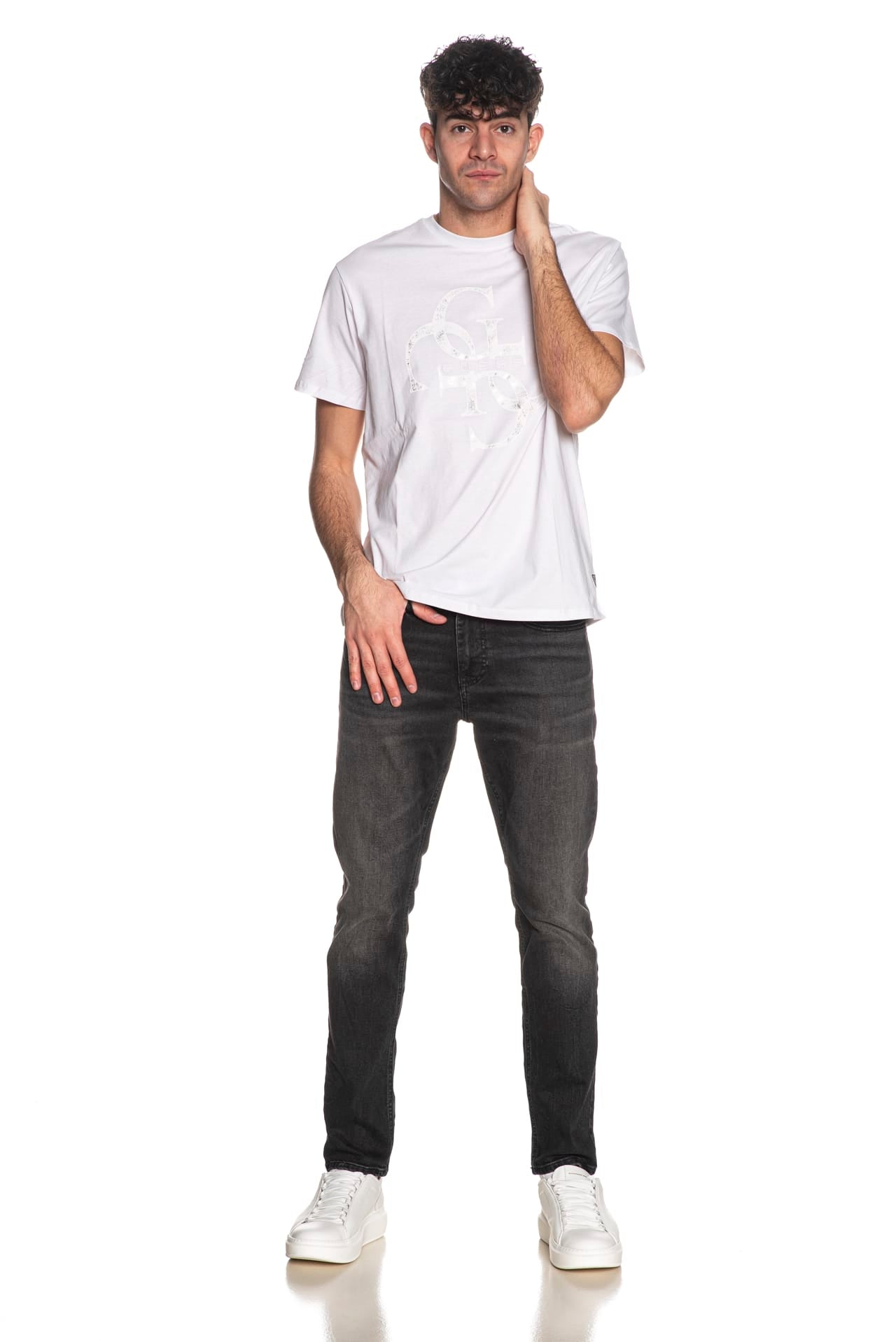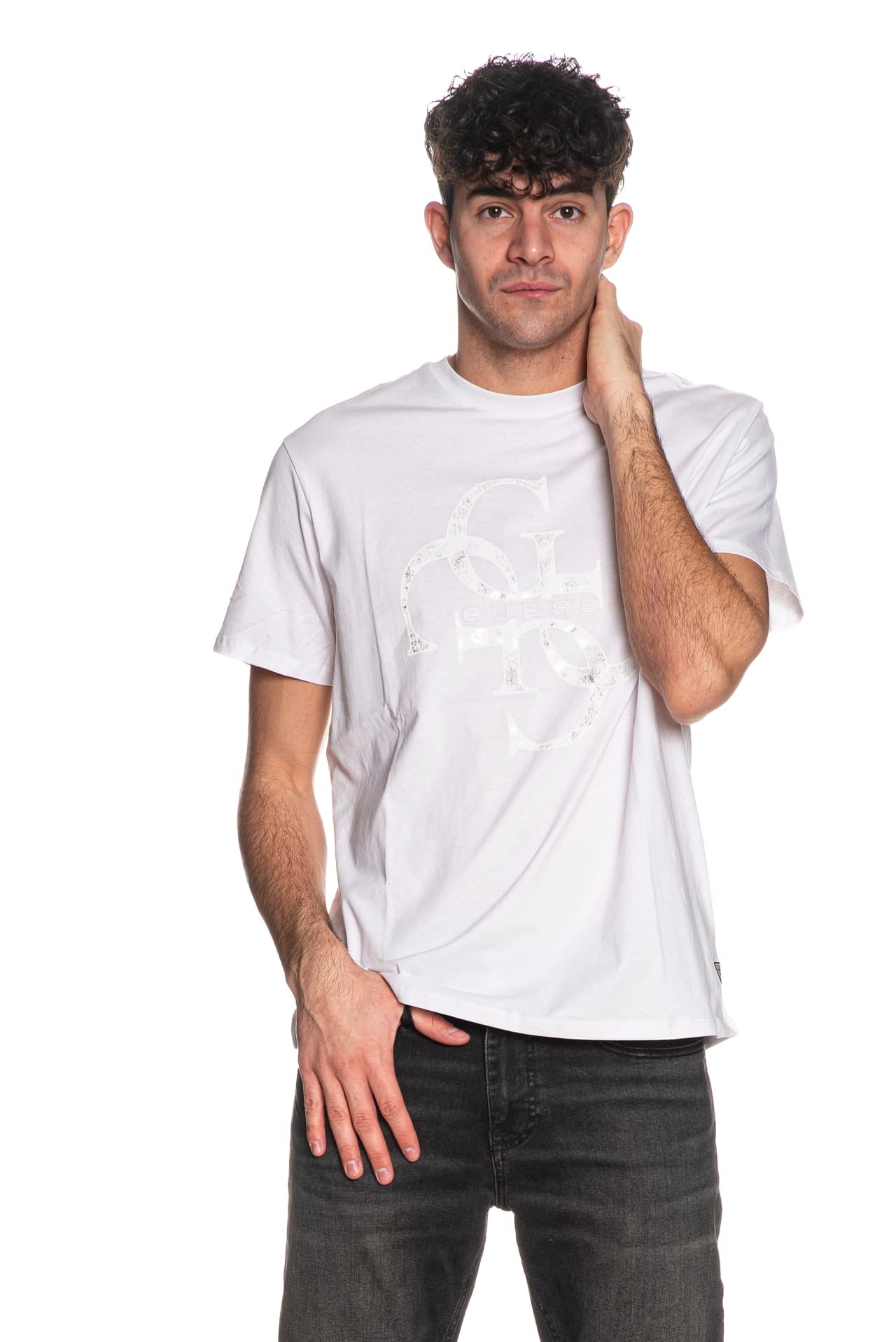 T Shirt Guess Shimmer Da Uomo Bianca