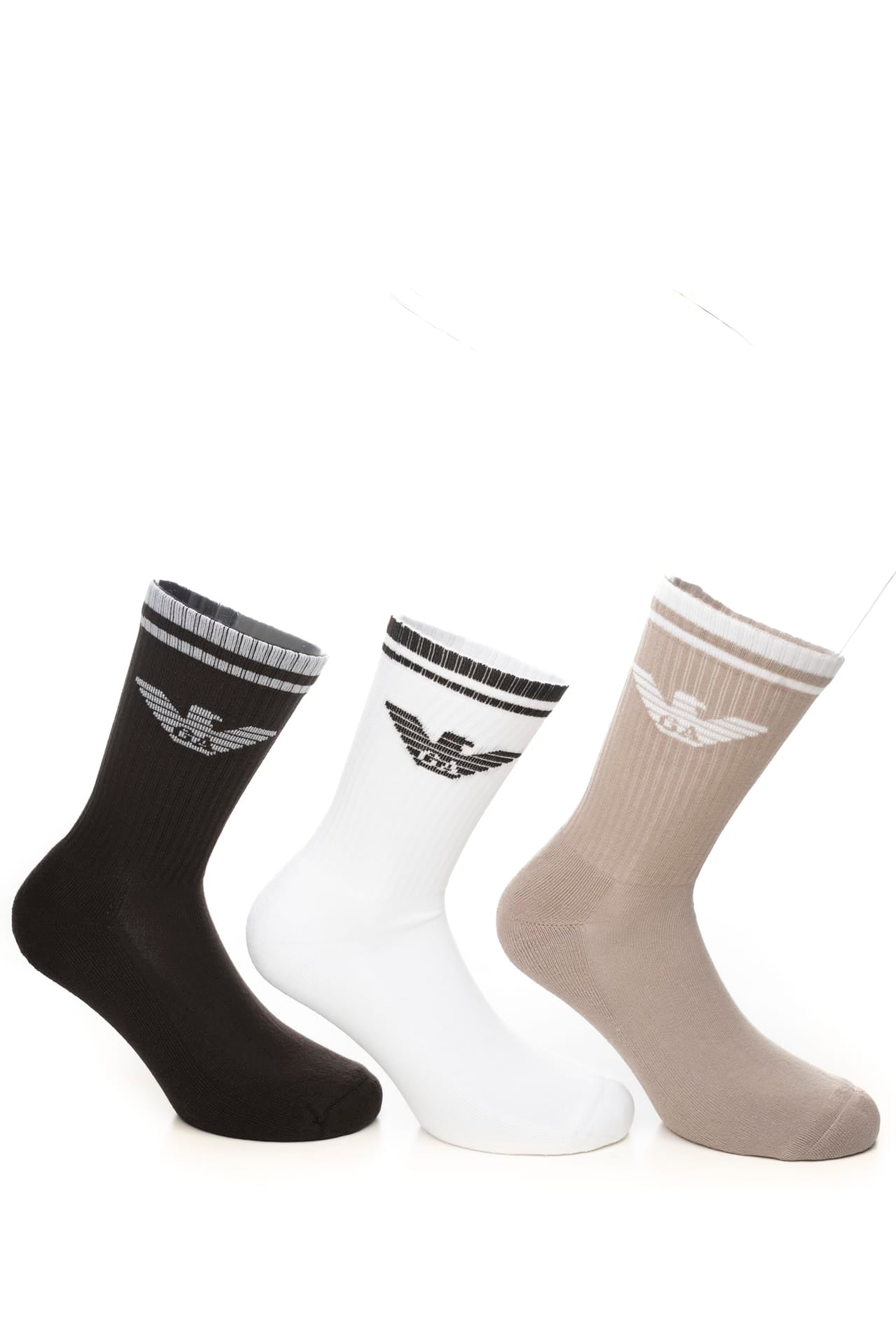Calzini Bassi Emporio Armani Set 3 Pack Short Socks Da Uomo Cioccolato Tortora Bianco Monogramma A Contrasto In Filato Di Misto Cotone