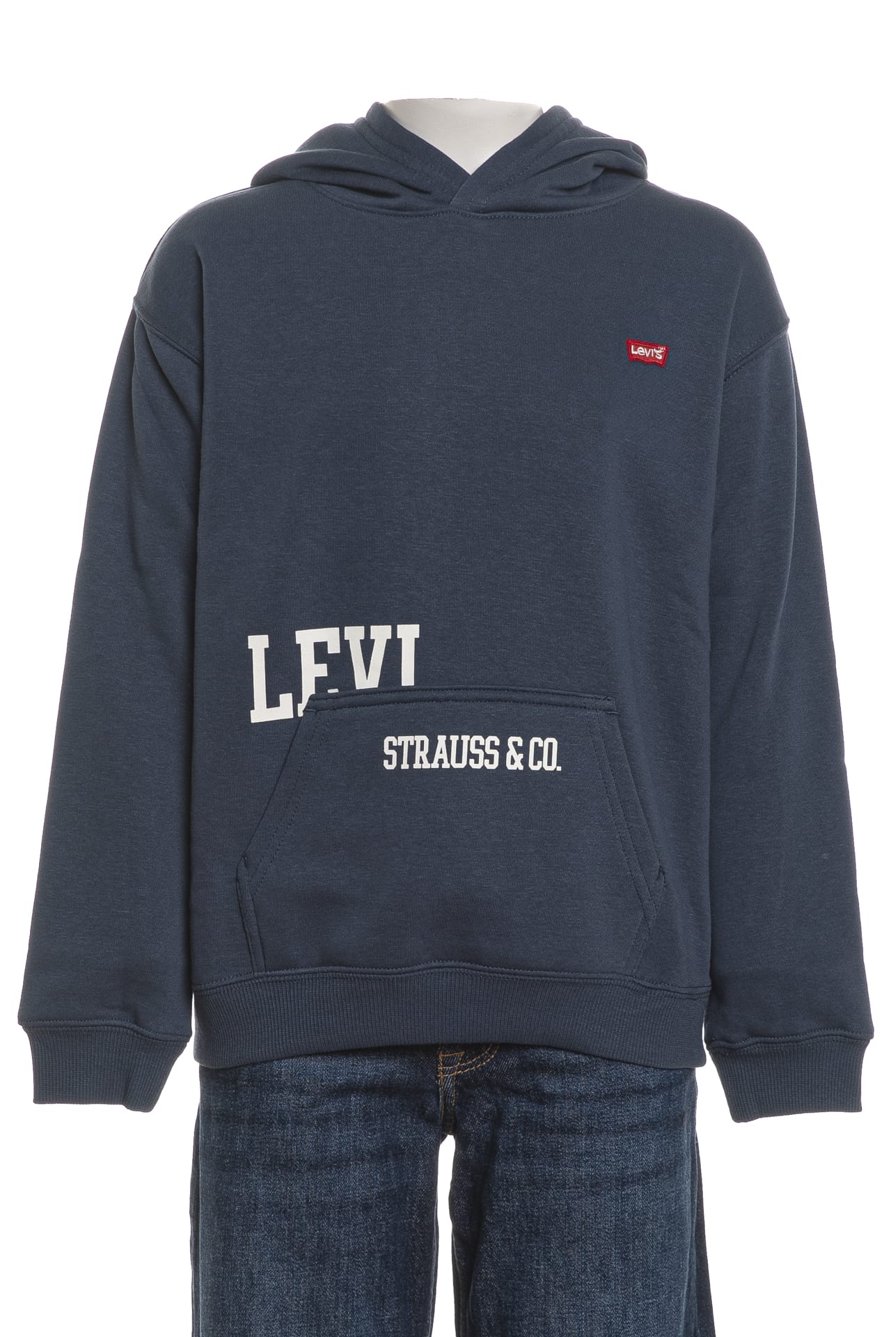 Felpa Levi's Cutoff Hoodie Jr da bambino in tessuto invernale di misto cotone e poliestere, a manica lunga, con cappuccio fisso, mini patch istituzionale a contrasto sul petto, stampa logo sul tascone a marsupio, polsini e cannolè a costine