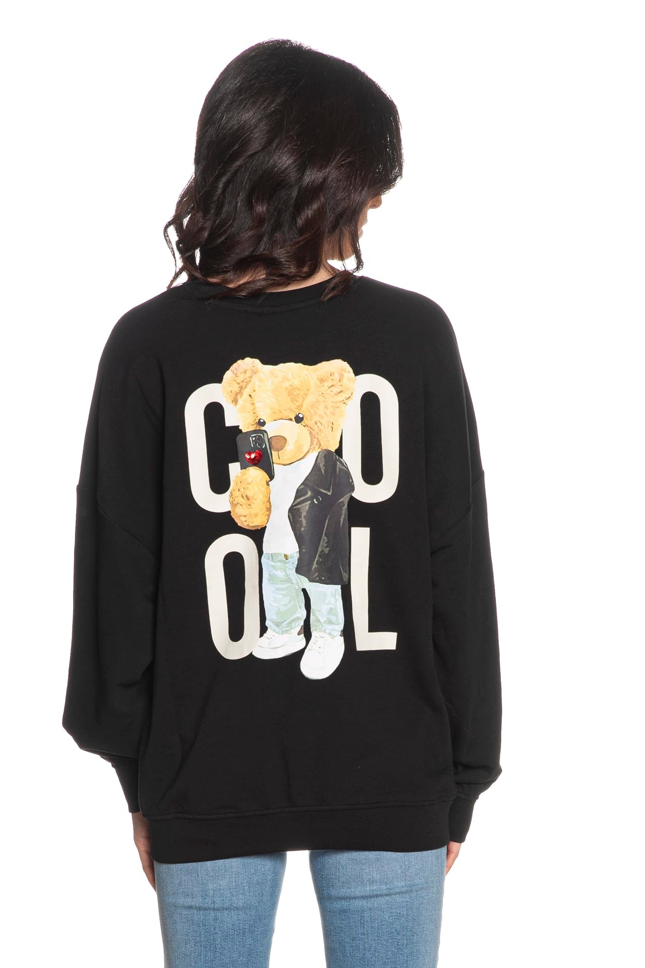 Felpa Only Teddy O Neck Ptd da donna in tessuto garzato di cotone e poliestere, oversized fit, con splla scesa, manica lunga, stampa a tema orsetto, girocollo polsini e cannolè a costine