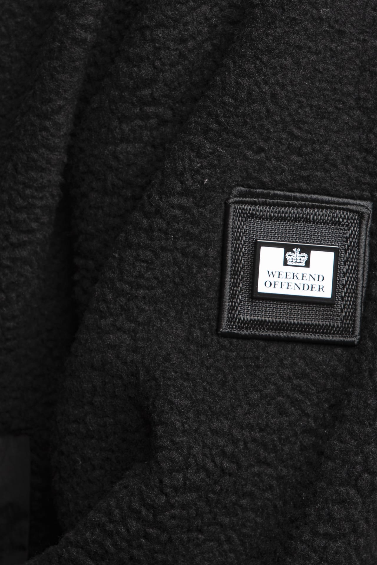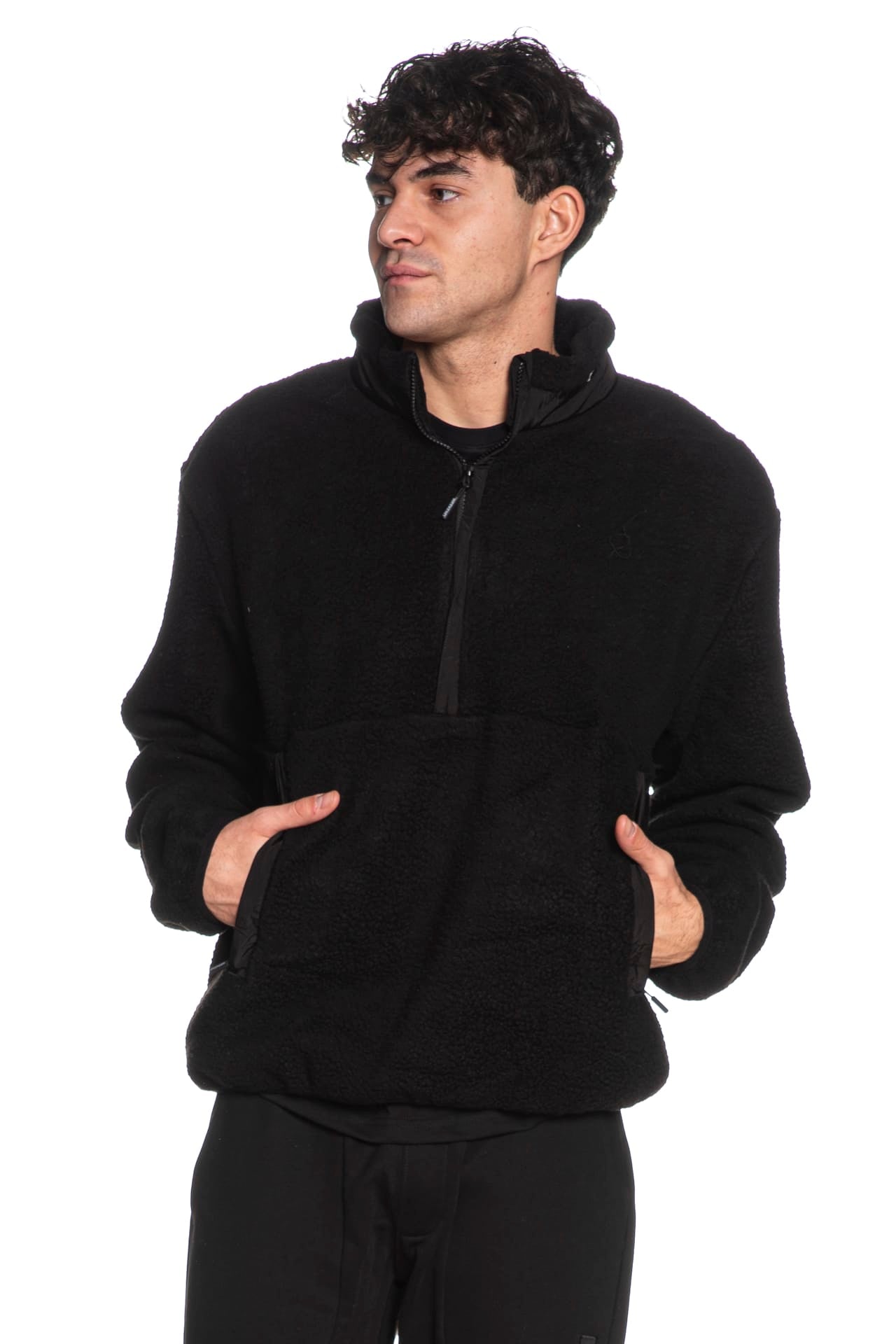 Felpa Weekend Offender Stanier da uomo in simil sherpa di poliestere, con inserto al collo alto patta sulla mezza zip e profili in tessuto di nylon in tono colore, tascone a marsupio con zip laterali coperte, tag logo applicato con velcro a strappo sulla manica lunga e fondo nastrato elastico