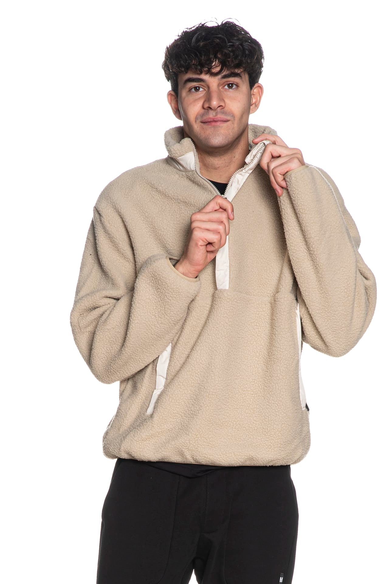 Felpa Weekend Offender Stanier da uomo in simil sherpa di poliestere, con inserto al collo alto patta sulla mezza zip e profili in tessuto di nylon in tono colore, tascone a marsupio con zip laterali coperte, tag logo applicato con velcro a strappo sulla manica lunga e fondo nastrato elastico