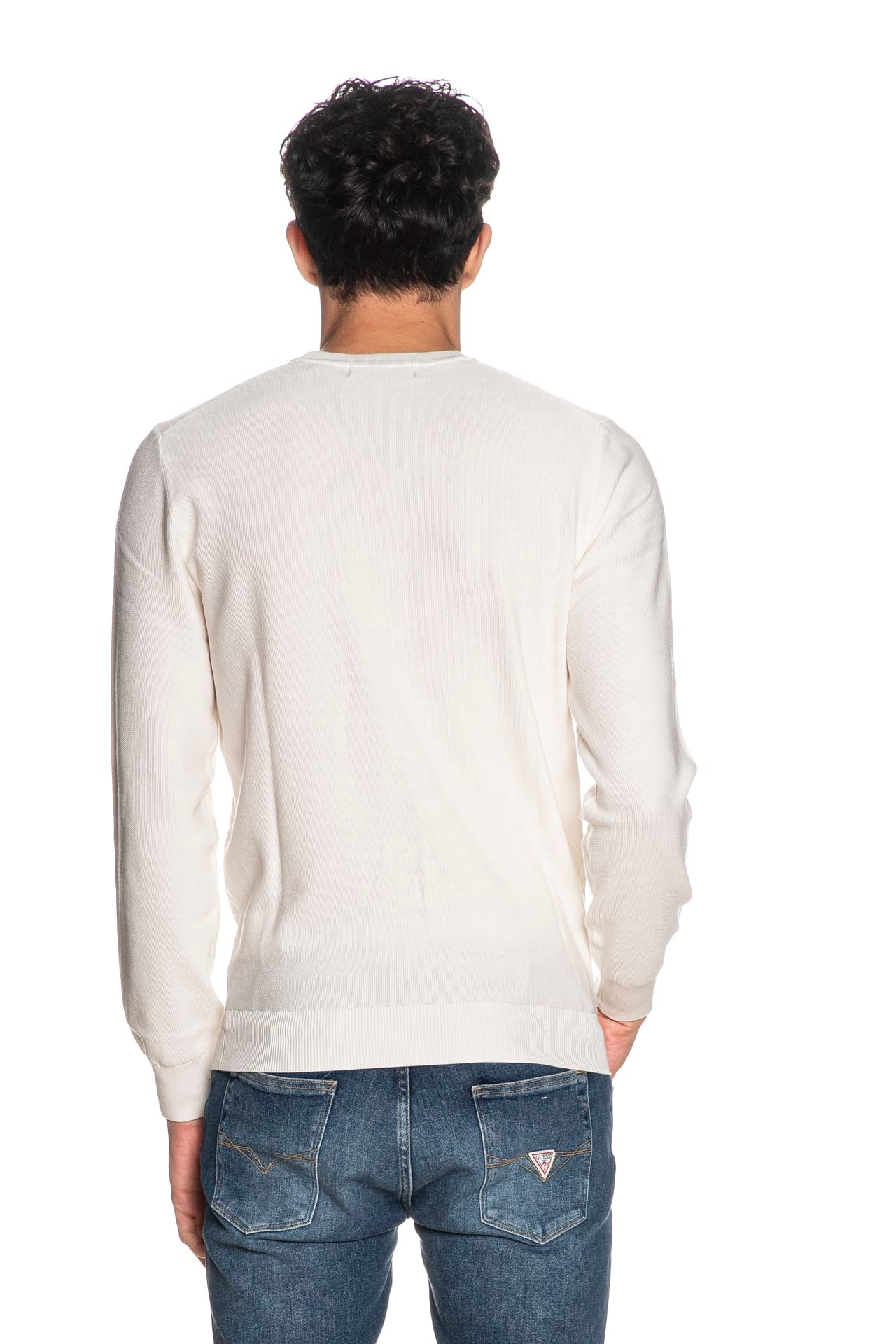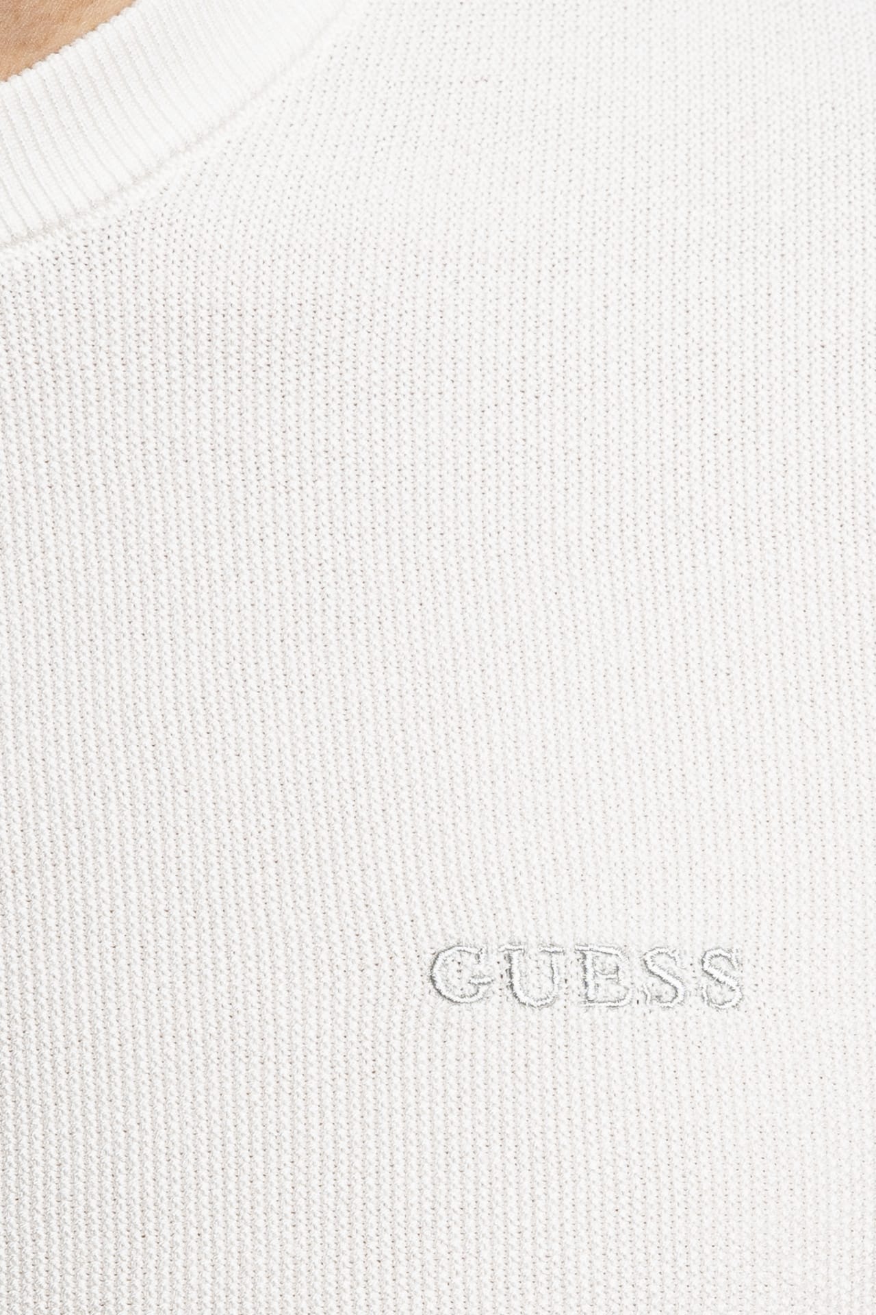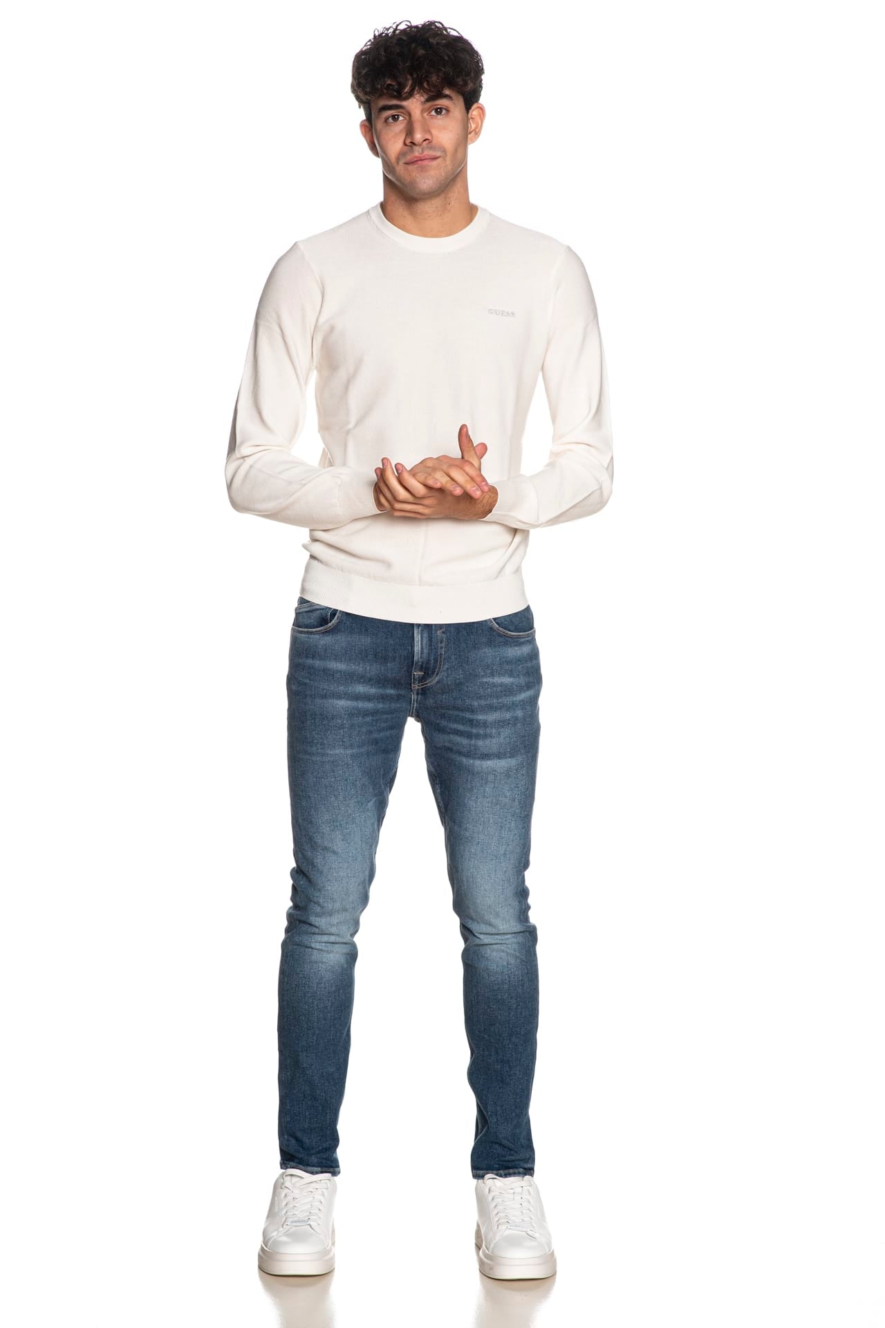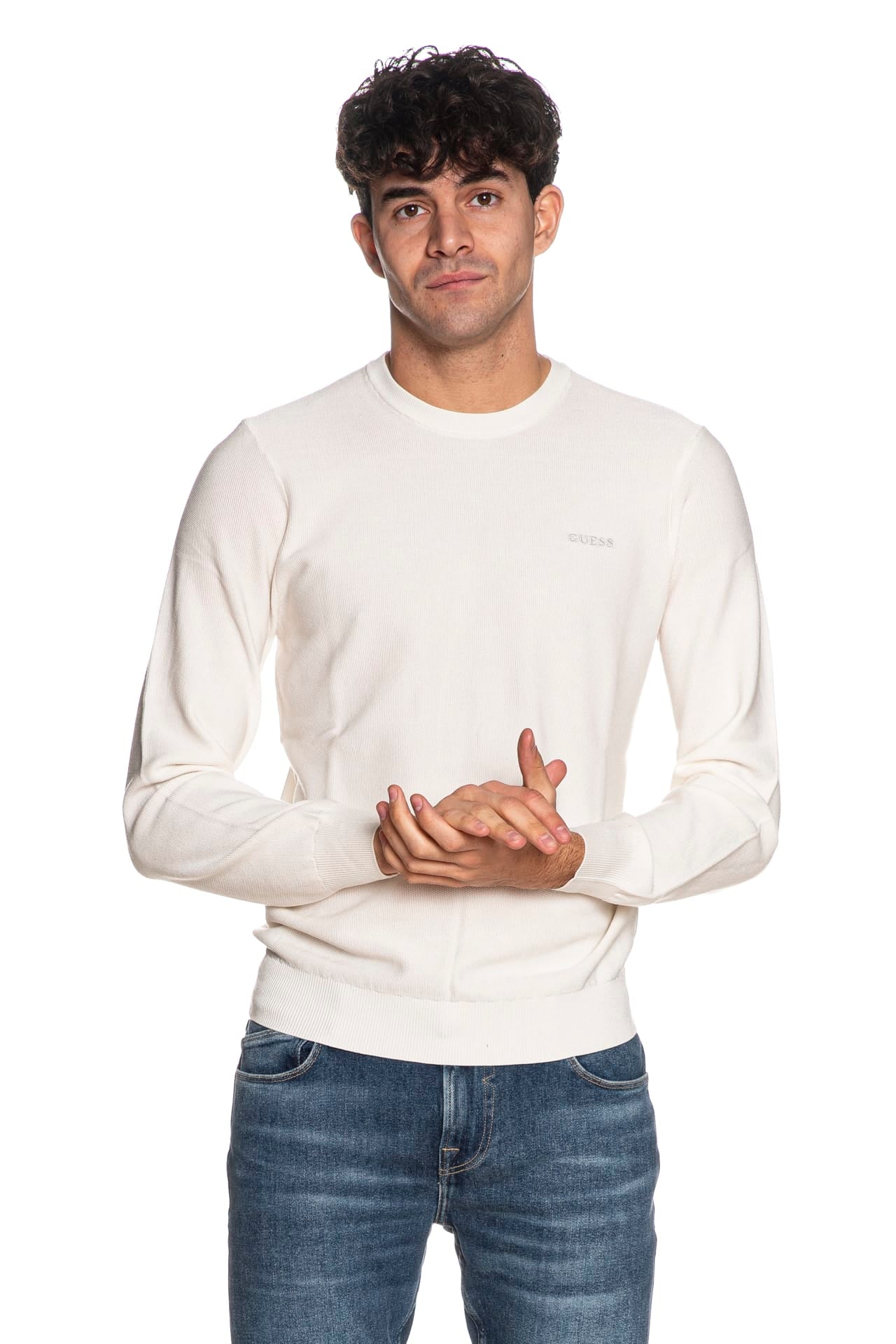 Maglia Guess Karim da uomo in filato lavorato effetto piquet di misto lyocell e poliestere, a manica lunga, con piccolo logo lettering ricamato a contrasto colore sul petto, girocollo polsini e cannolè a costine