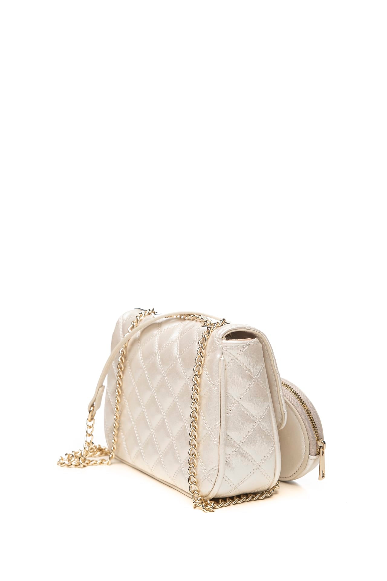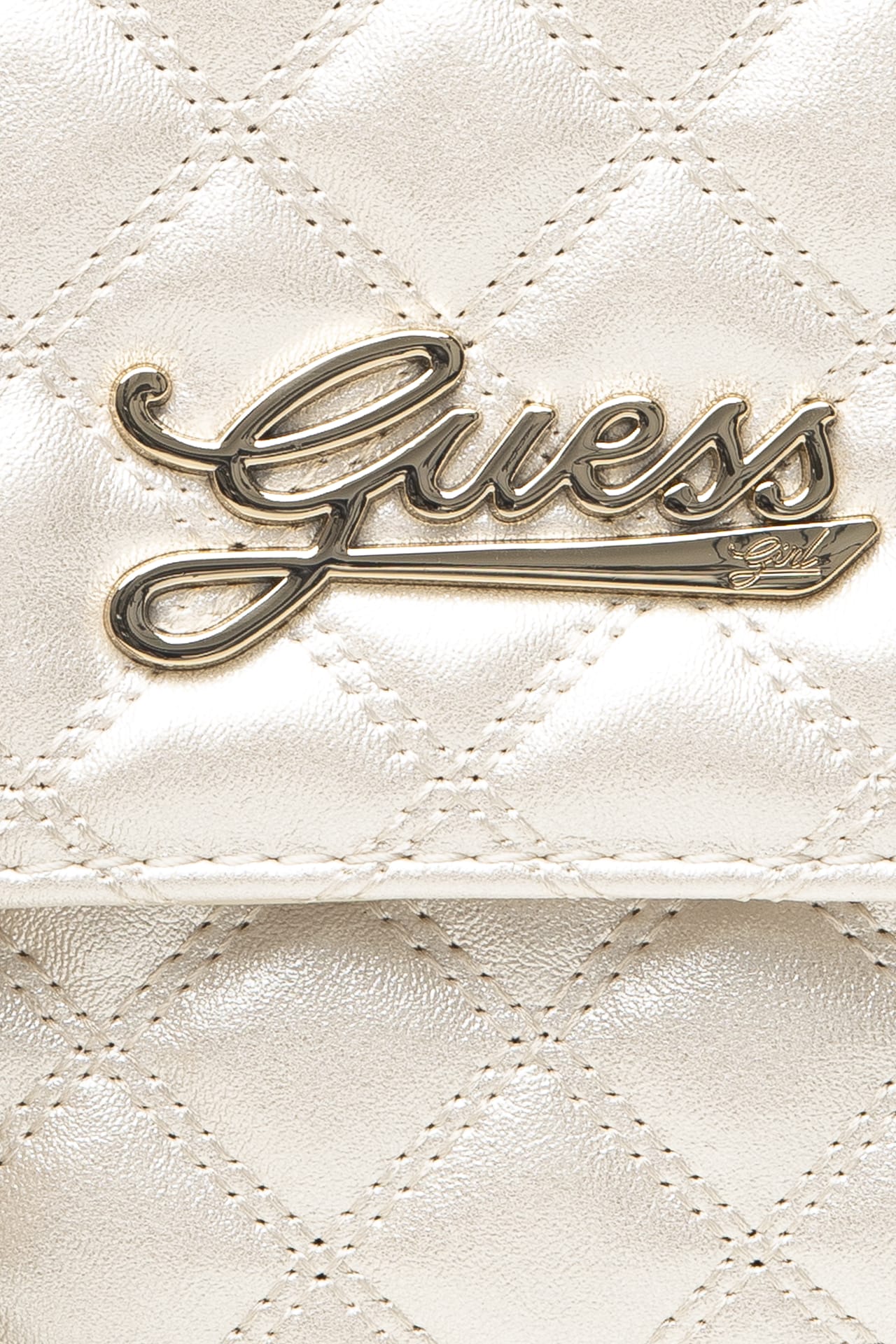 Borsa Guess Girl Mini Cvr Cb da bambina in poliuretano trapuntato a rombi, modello crossbody small, con chiusura magnetica, logo firmato in metallo dorato sulla patta e portamonete tondo agganciato alla tracolla scorrevole in catena oro Misure: 20x6x14 cm