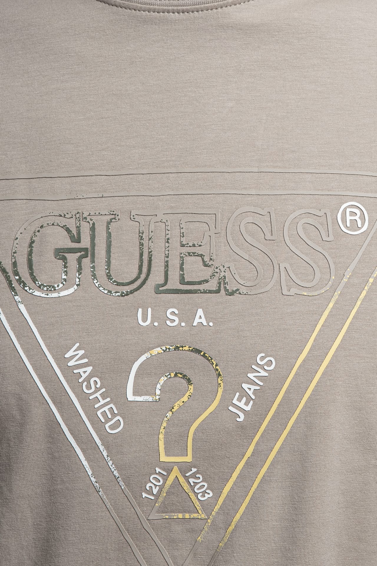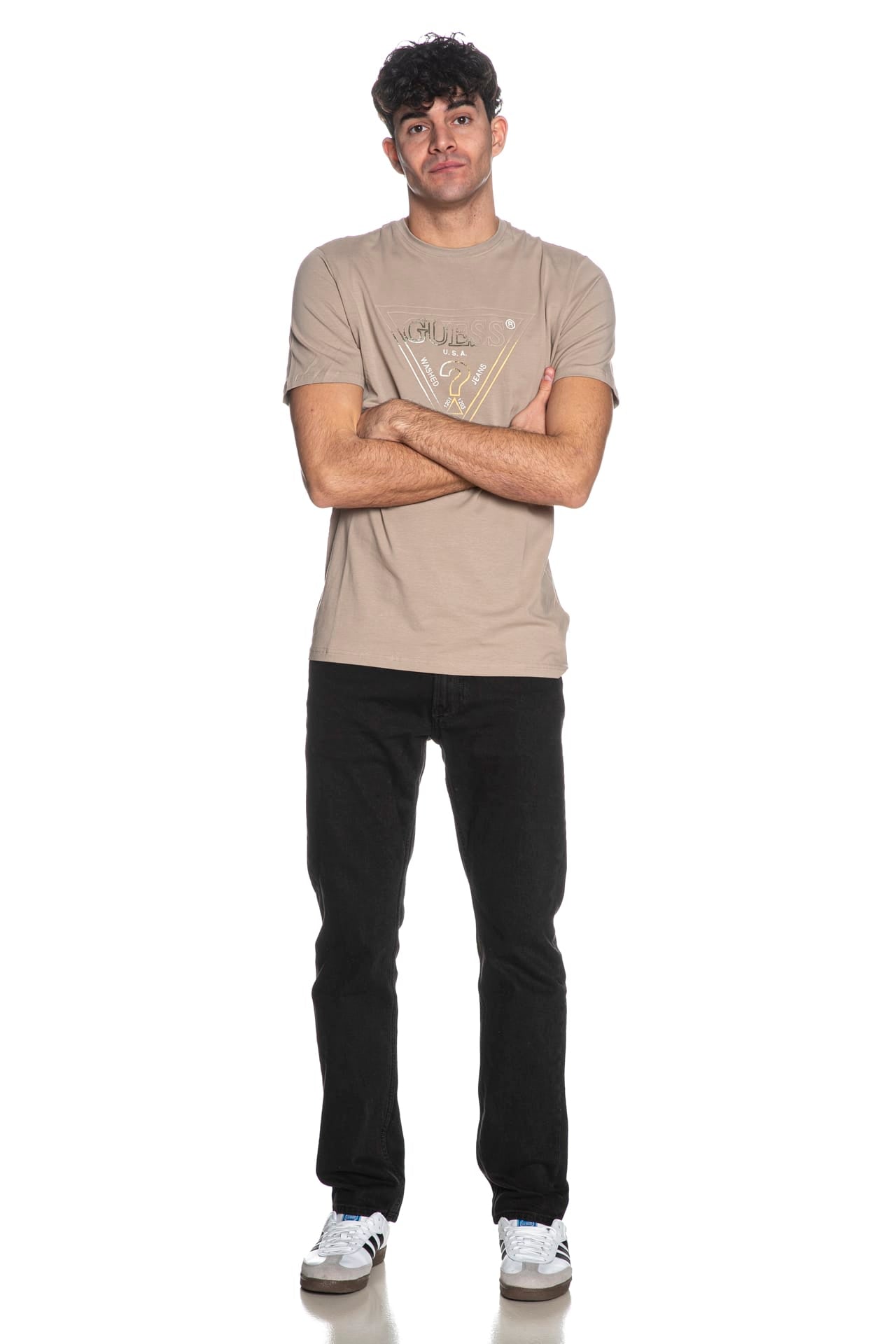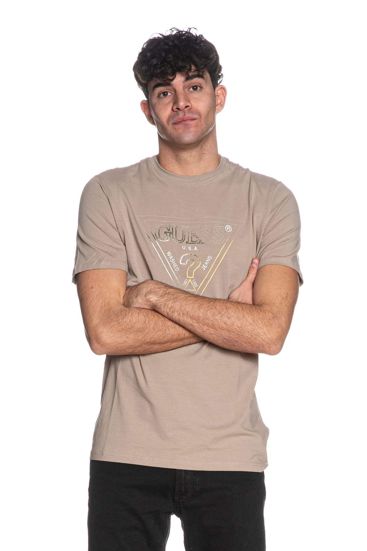 T-Shirt Guess Cn Ss Triangle Multicolor Da Uomo Nocciola