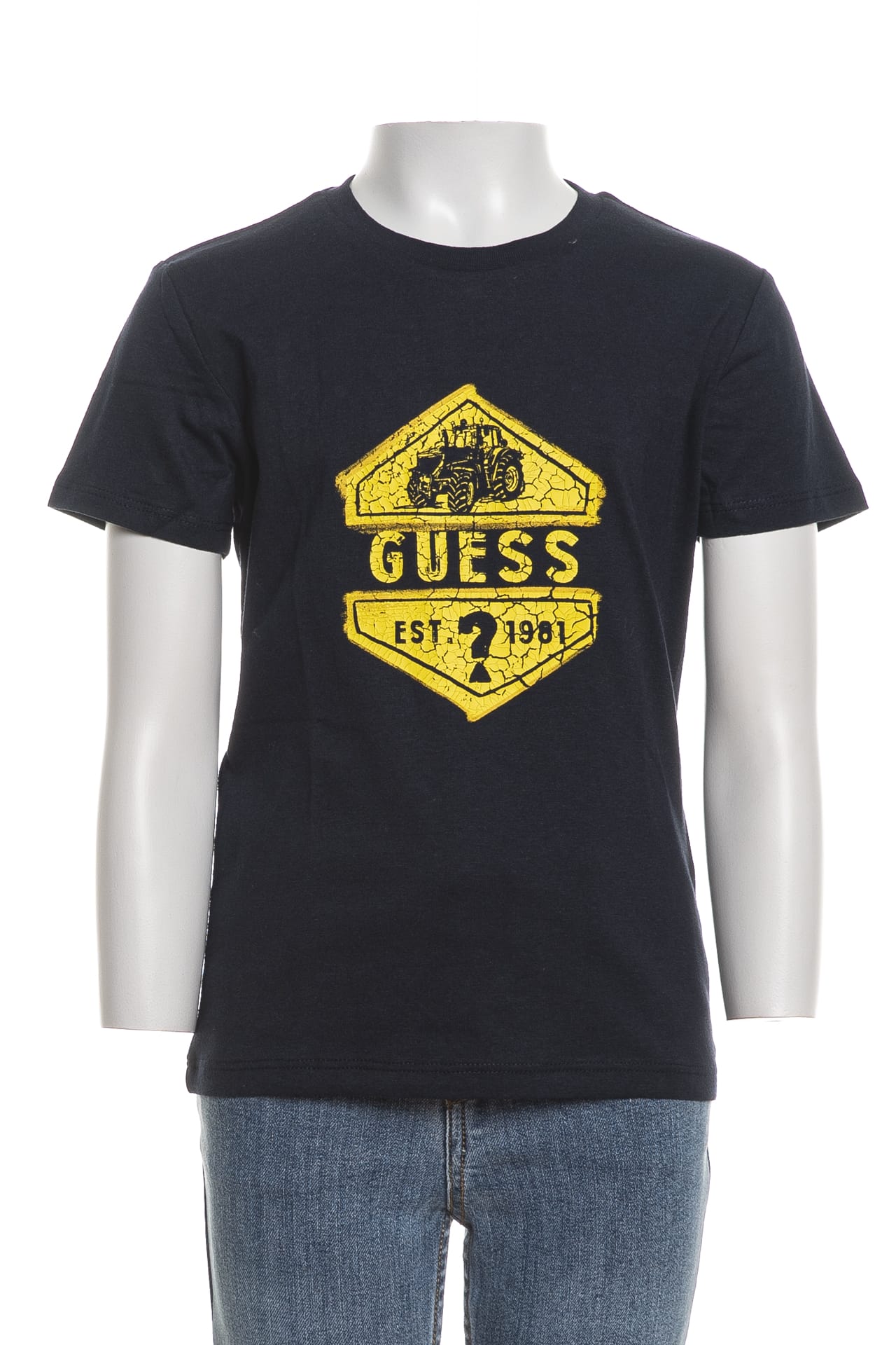 T Shirt Guess Est 1981 Crack Ss Tee Da Bambino Blu Marina