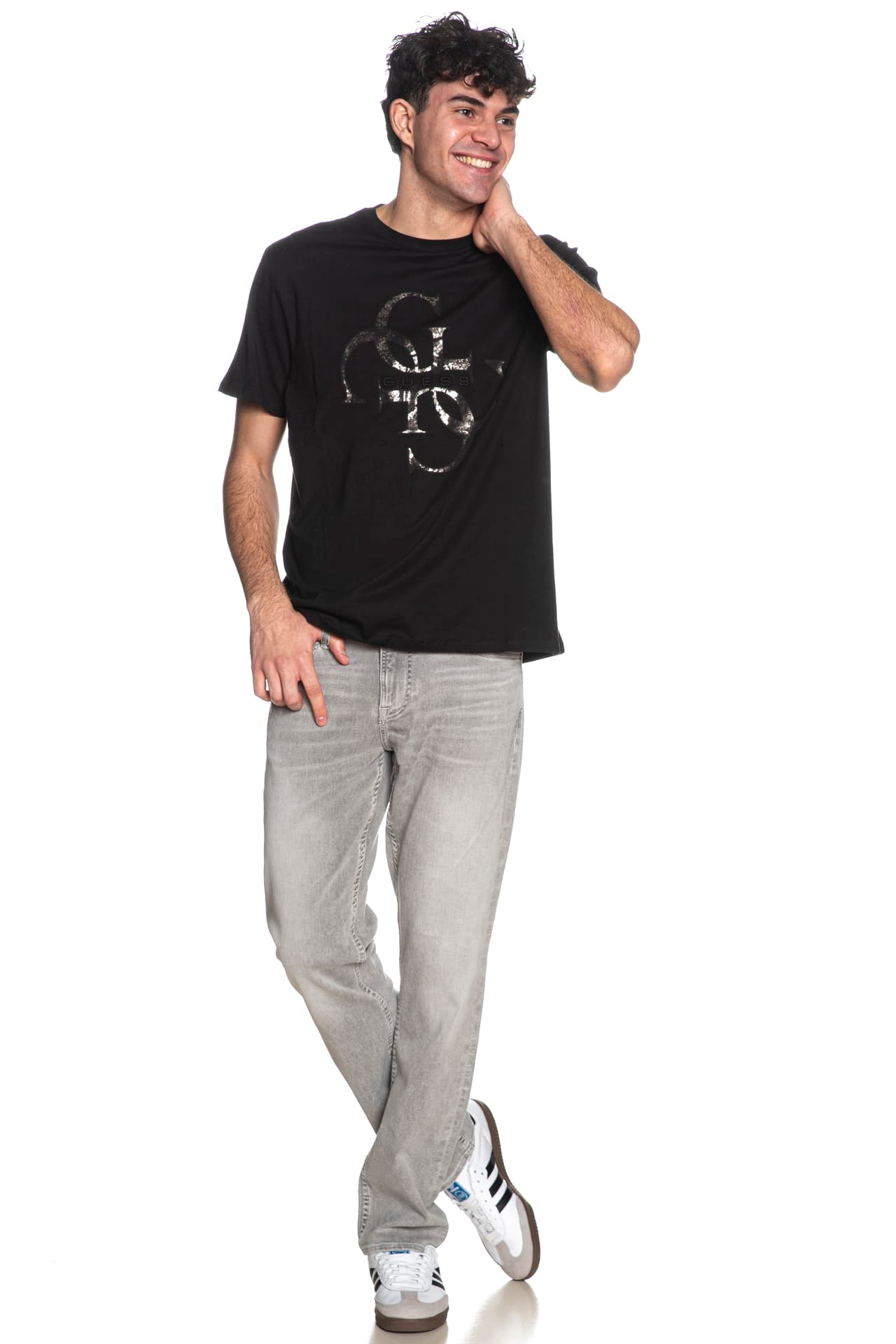 T Shirt Guess Shimmer Da Uomo Nera
