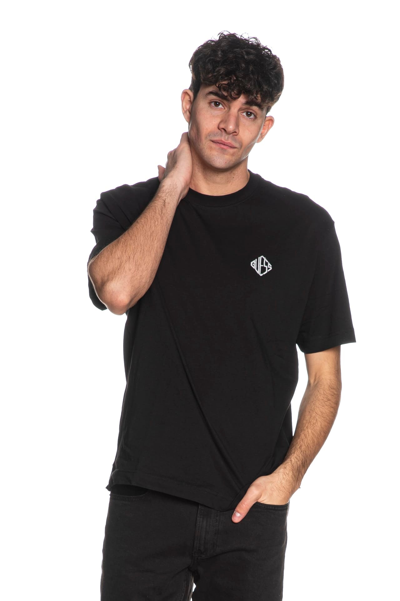 T-Shirt Guess Ss Cn Diamante Lg Tee da uomo in jersey stretch di cotone parzialmente organico, oversize fit, con girocollo in maglia e ricamo logo a contrasto sul petto