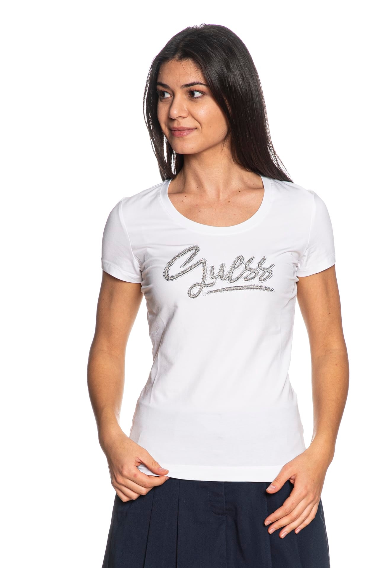 T-Shirt Guess Ss Gss Script Da Donna Bianca