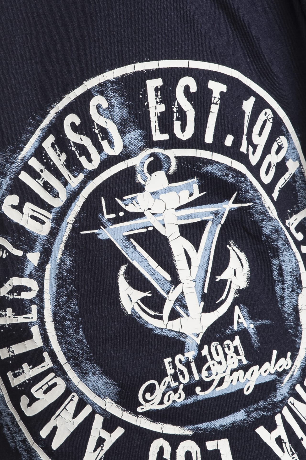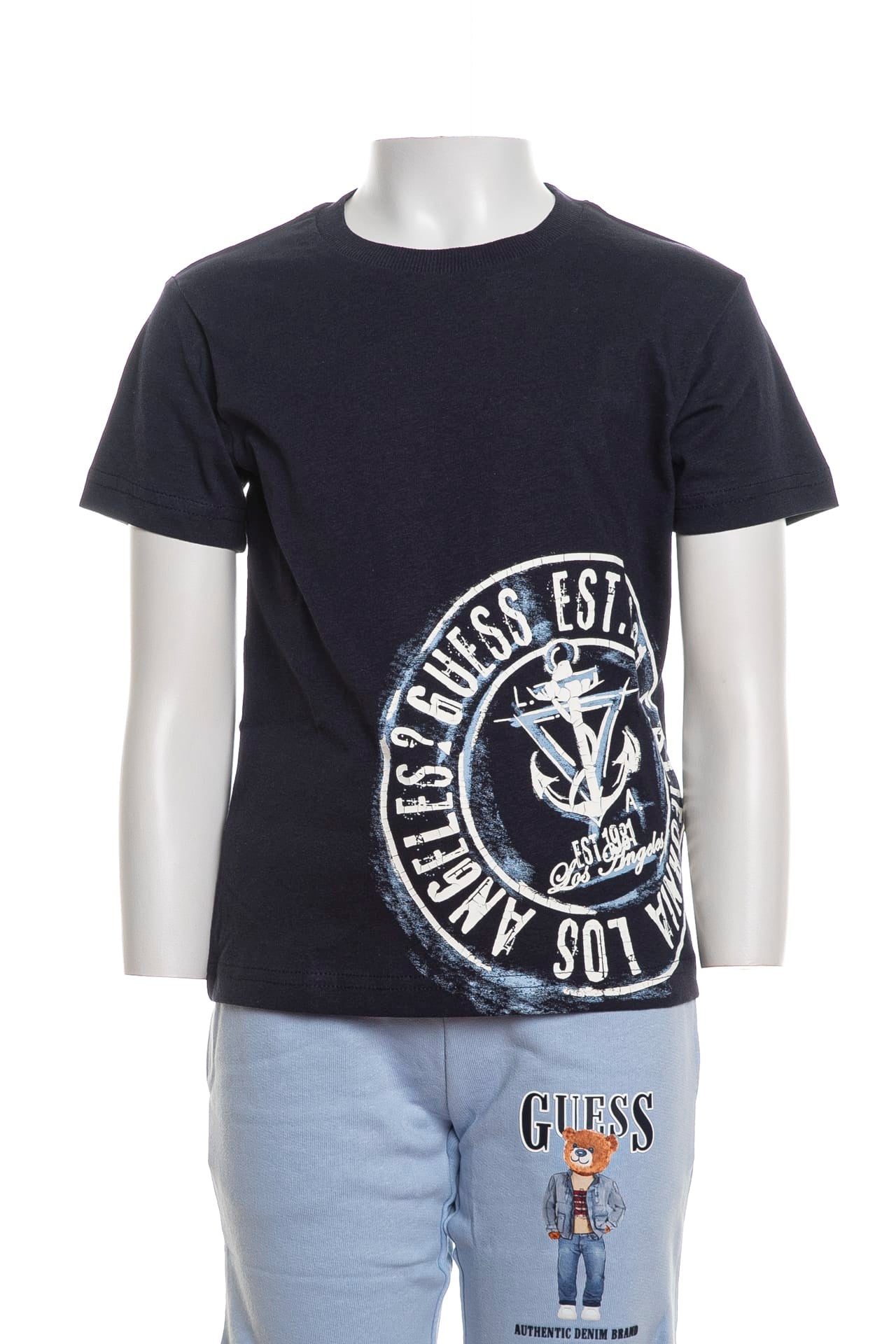 T Shirt Guess Ssl Naval Stamp Tee Da Bambino Blu Navy