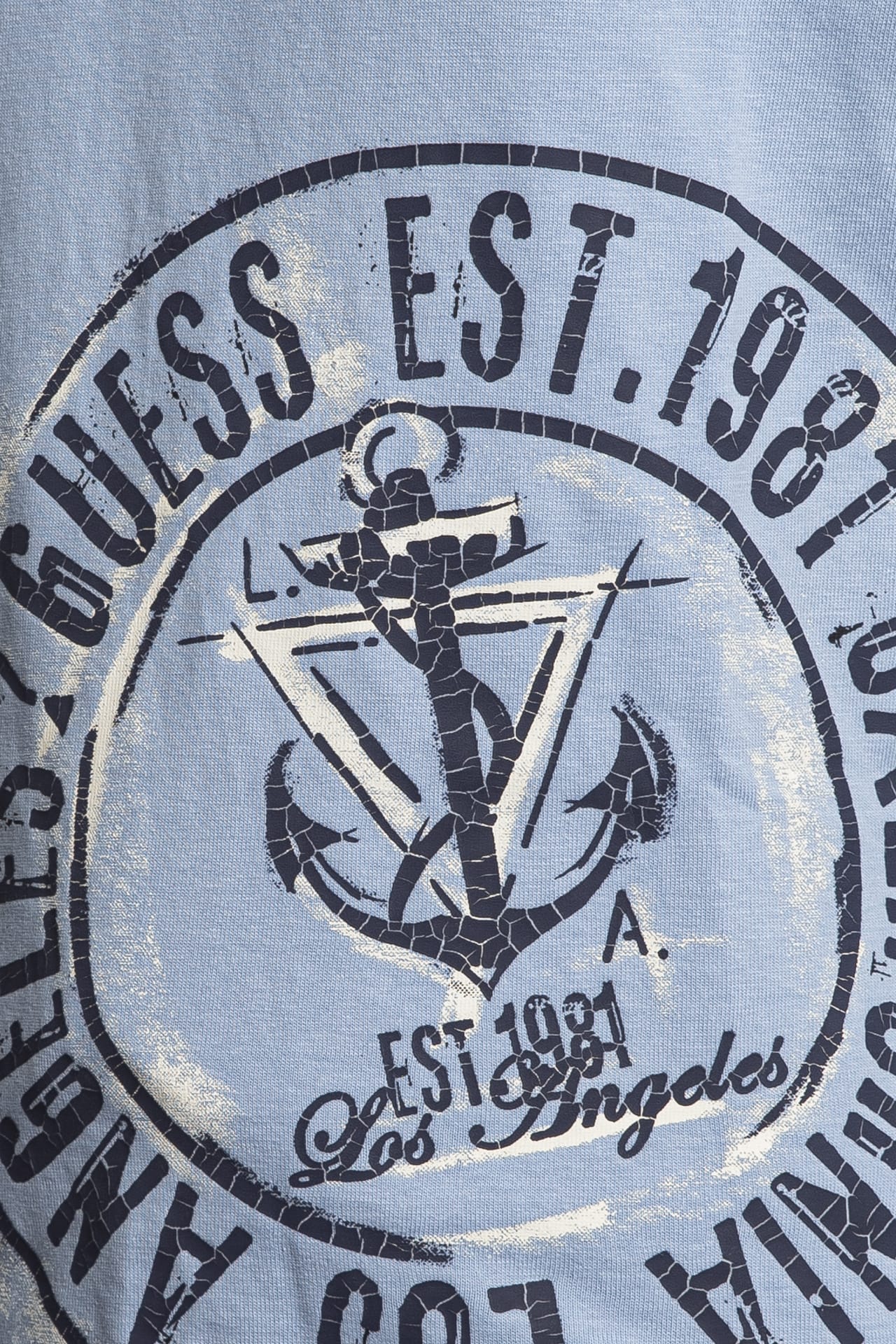 T Shirt Guess Ssl Naval Stamp Tee da bambino, in jersey di cotone parzialmente organico, a manica corta, con girocollo a costine e macro stampa a tema nautico effetto vintage sul lato anteriore