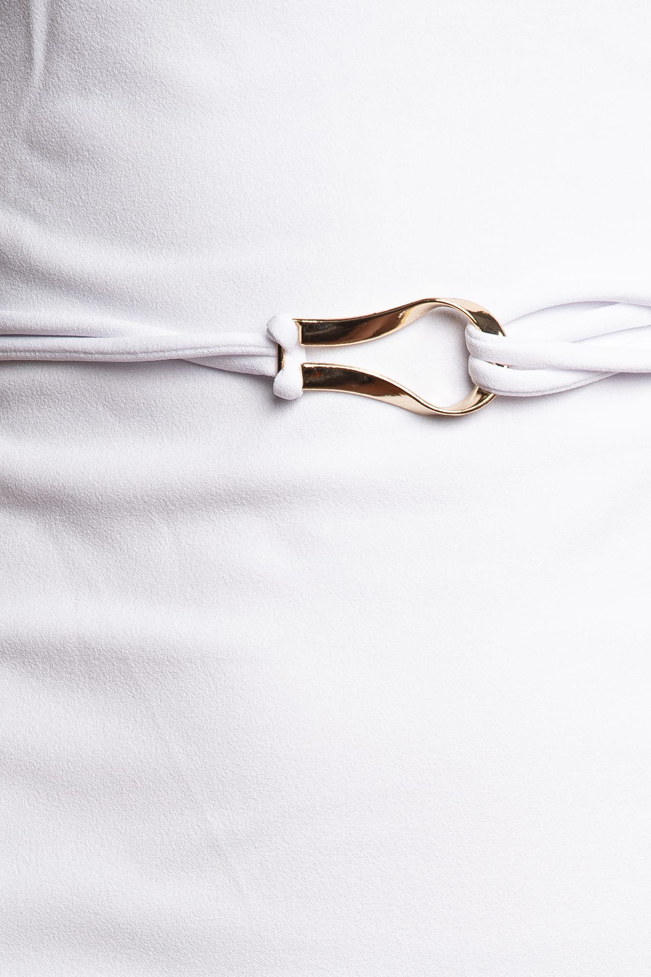 Vestito Guess Clea Dress da donna in tessuto crépon di poliestere stretch, modello tubino aderente, con scollo quadrato, bretellina larga fissa, chiusura full zip a scomparsa posteriore e cintura tubolare con fibbia metallica