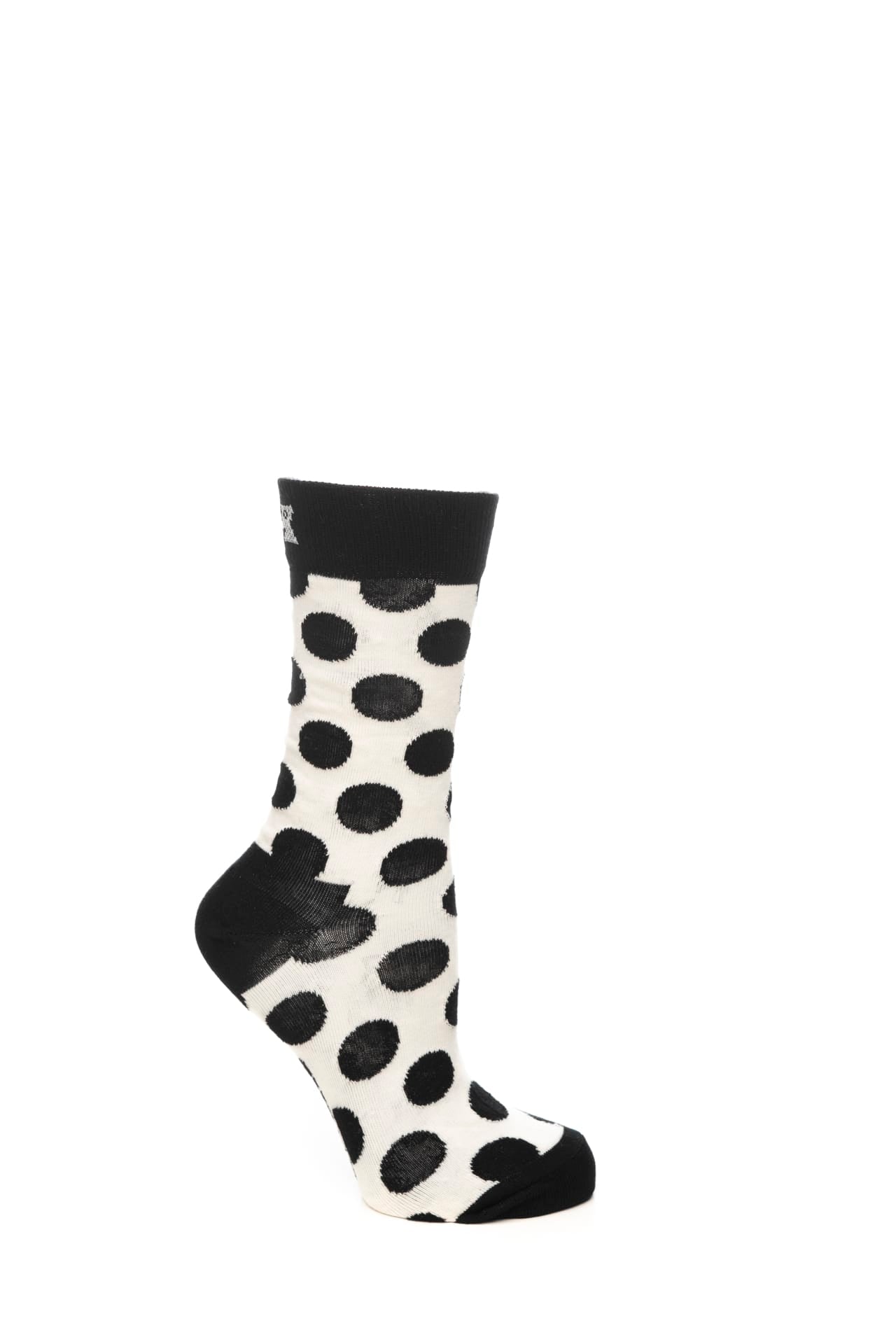 Calzino Corto Happy Socks Crew Big Dot Unisex Bianco Fantasia Grossi Pois Neri In Misto Cotone