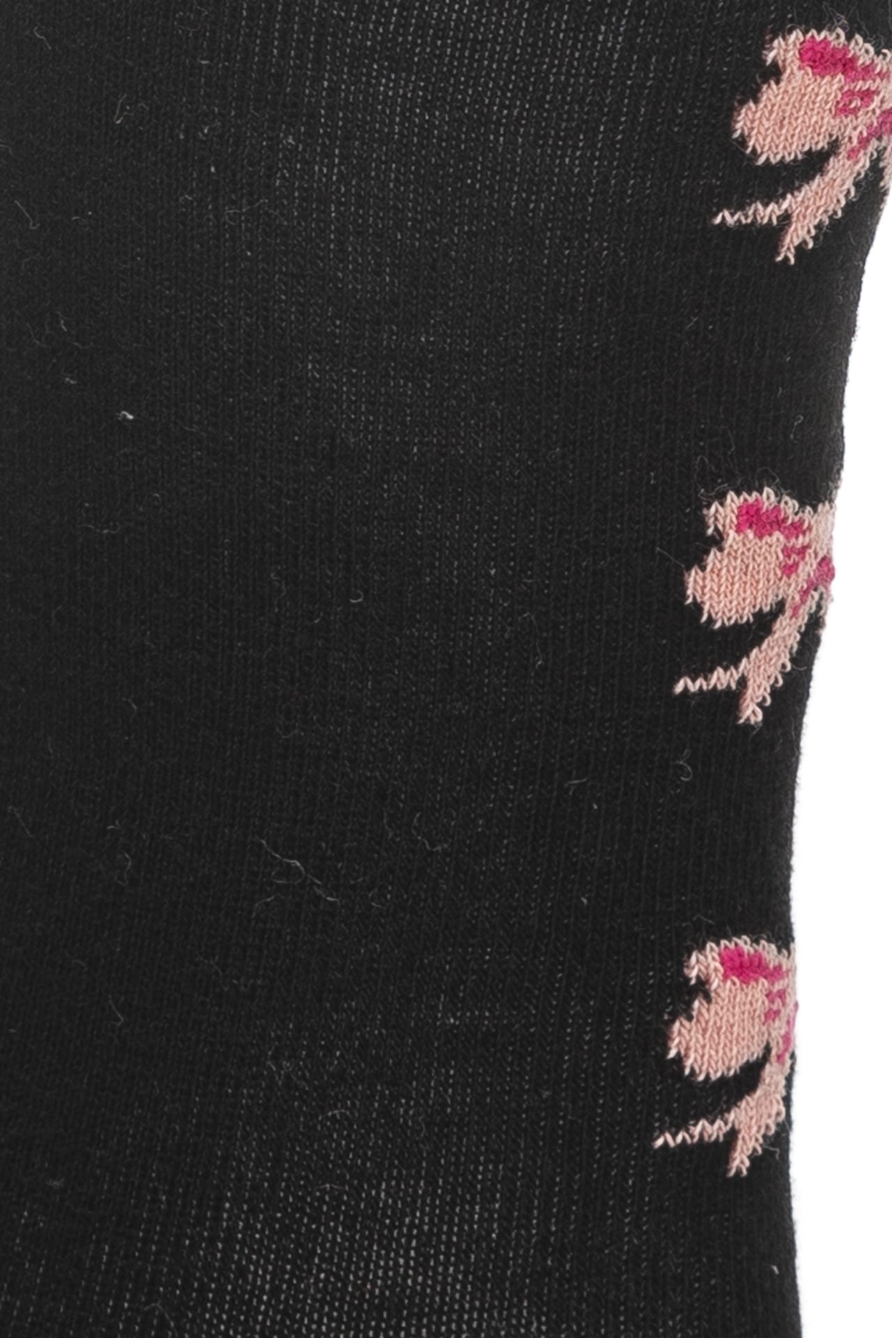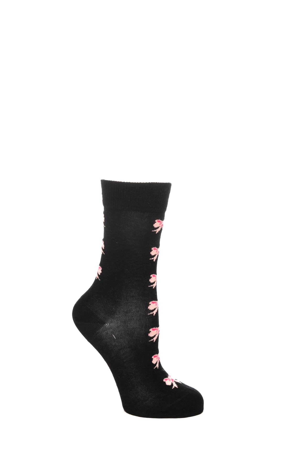 Calzino Corto Happy Socks Crew Bow Unisex Nero Fantasia Fiocchi Rosa In Misto Cotone
