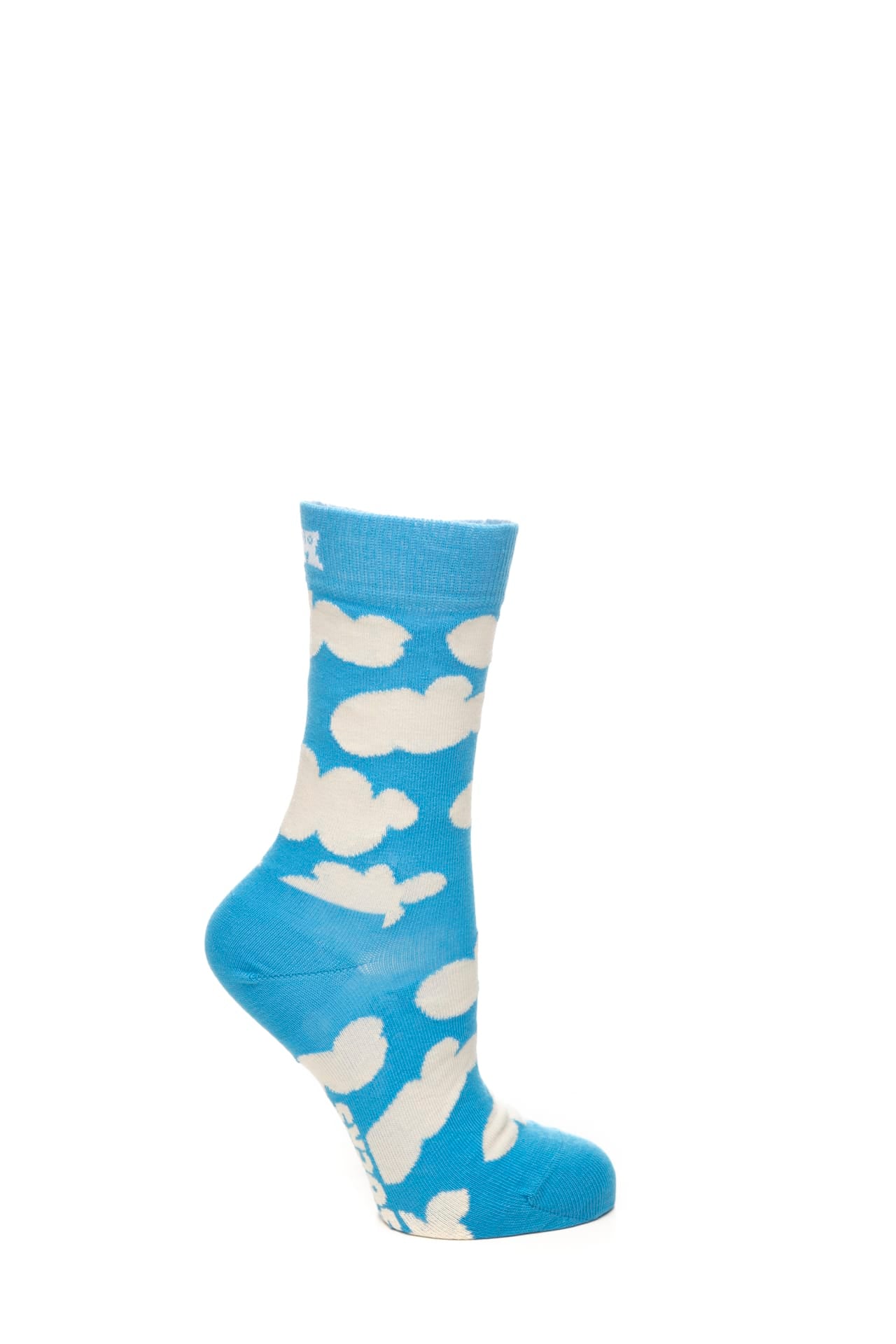 Calzino Corto Happy Socks Crew Cloudy Unisex Azzurro Fantasia Nuvole Panna In Misto Cotone