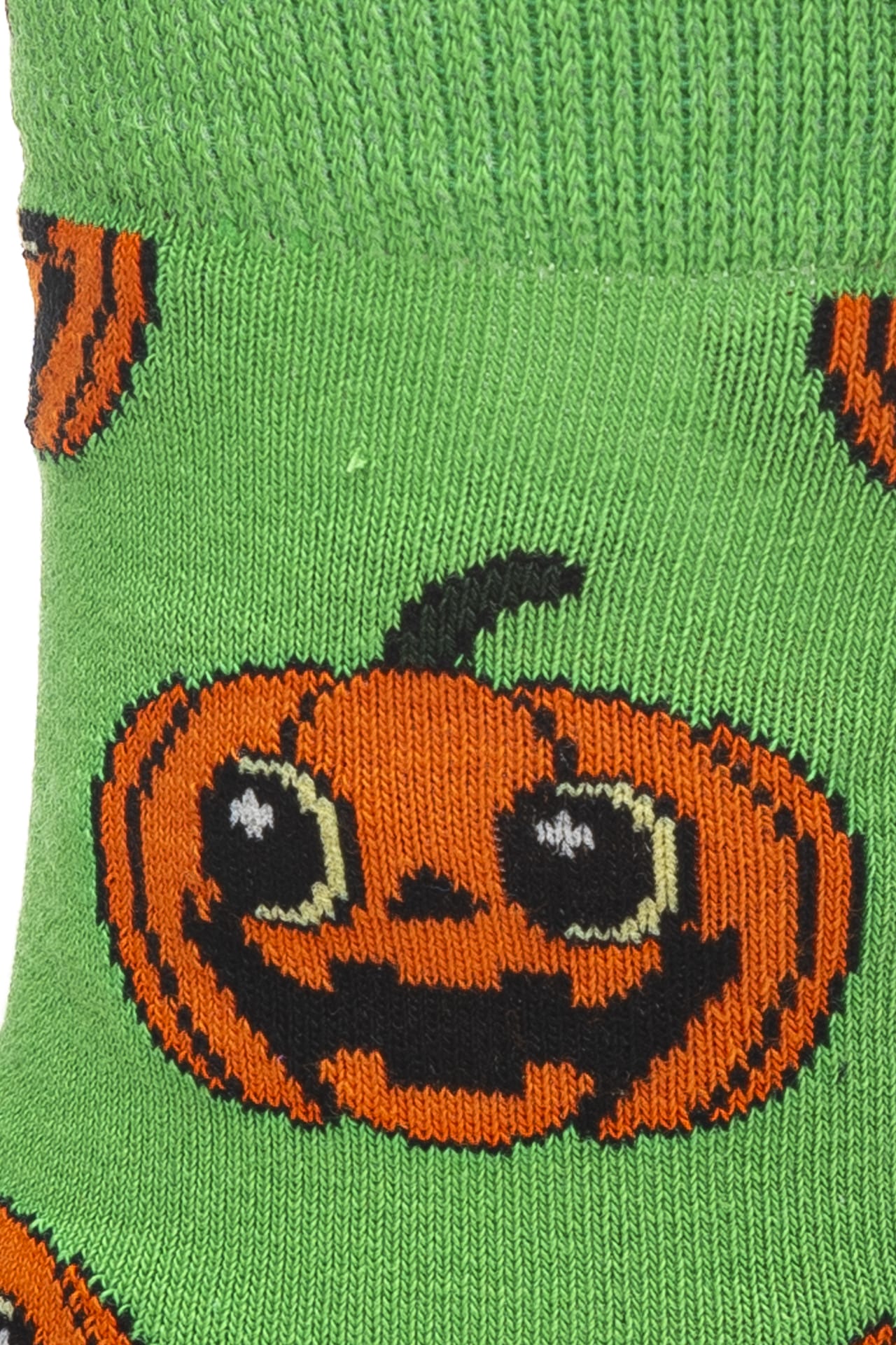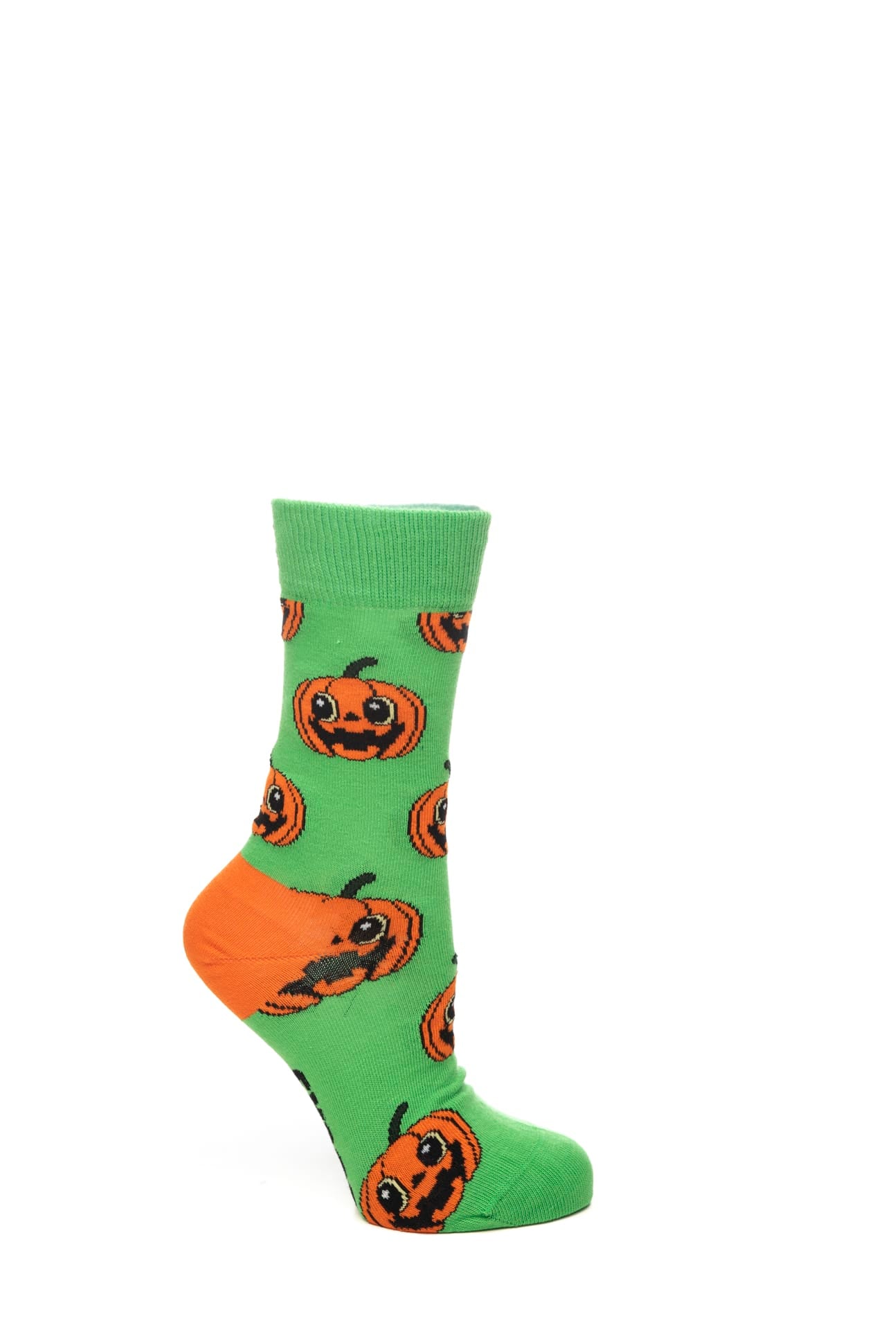 Calzino Corto Happy Socks Crew Pumpkin Unisex Verde Prato Antasia Zucche Arancio In Misto Cotone