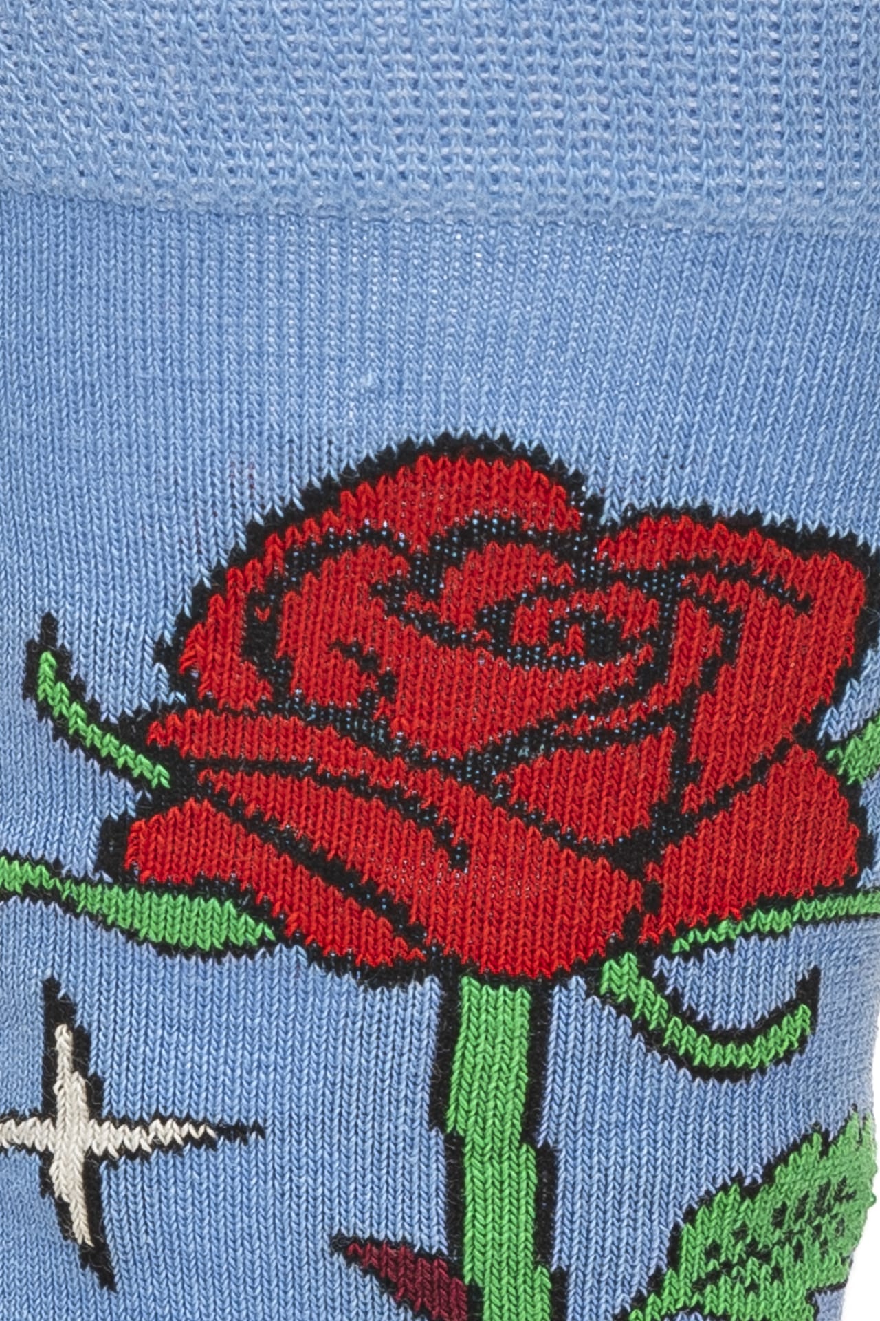 Calzino Corto Happy Socks Crew Rose Unisex Fiordaliso Fantasia Stelo Di Rosa Rosso Verde In Misto Cotone