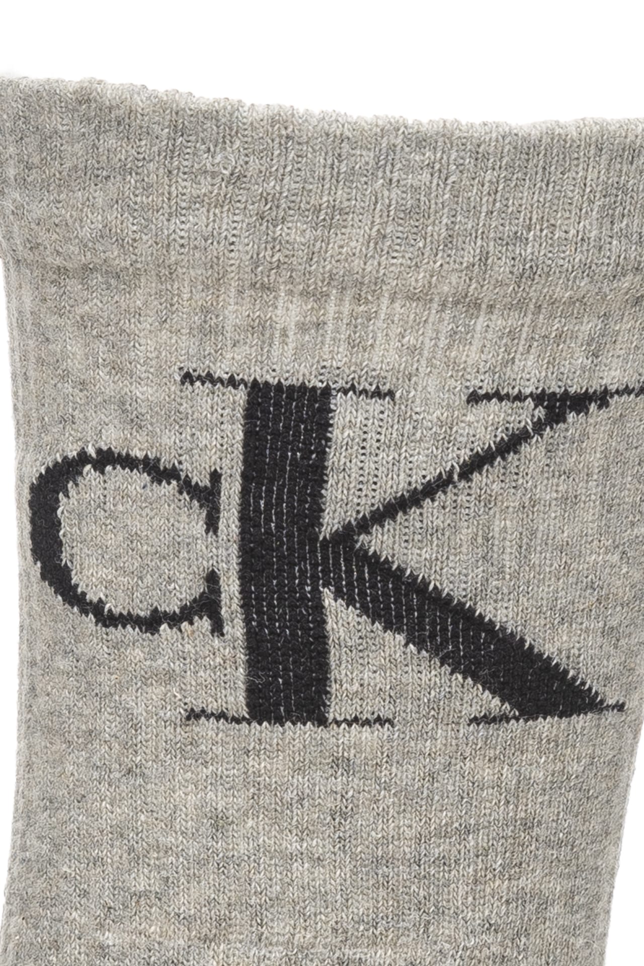 Calzini Corti Calvin Klein 2 Pack Monogram Socks Da Donna Grigio Melange In Filato Di Cotone