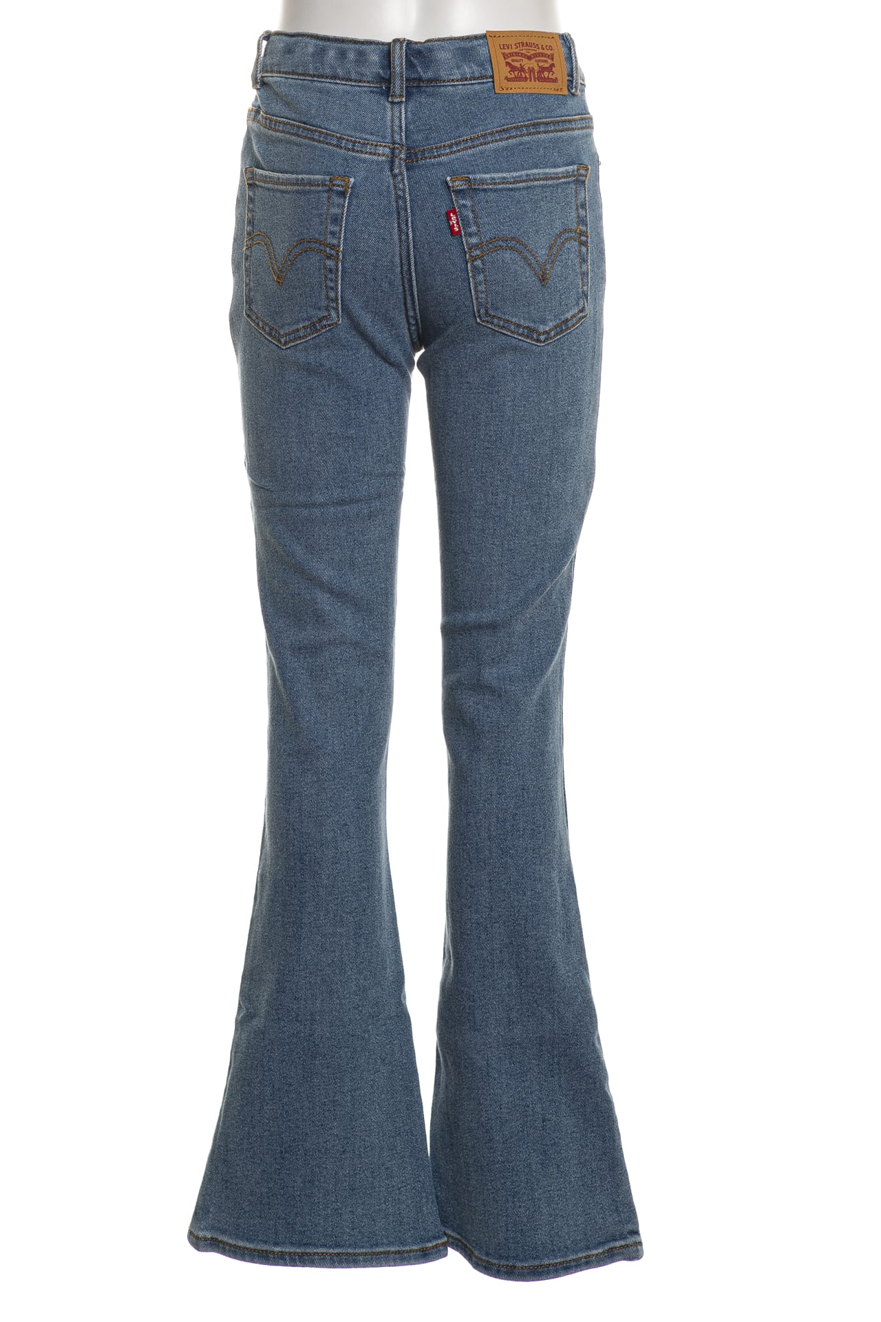 Jeans Levi's 726 High Rise Flare da bambina in tessuto stretch di misto cotone e poliestere, modello cinque tasche a vita alta con gamba a zampa d'elefante, fit regolabile da fettucce elastiche interne, Jacron logo sul retro, data la ricca tintura del capo al primo lavaggio potrebbe trasferire il colore, si consiglia di lavare da solo o con capi simili per le prime volte