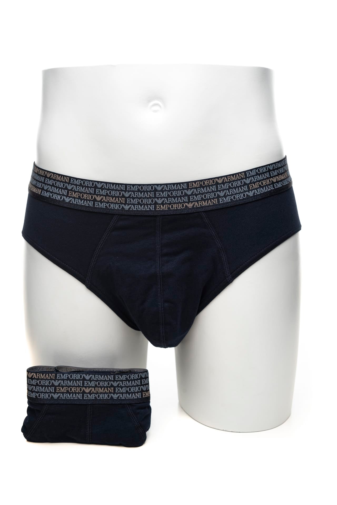 Slip Emporio Armani Brief 2 Pack Gift Box Da Uomo Blu Marina El Blu Marina In Tessuto
