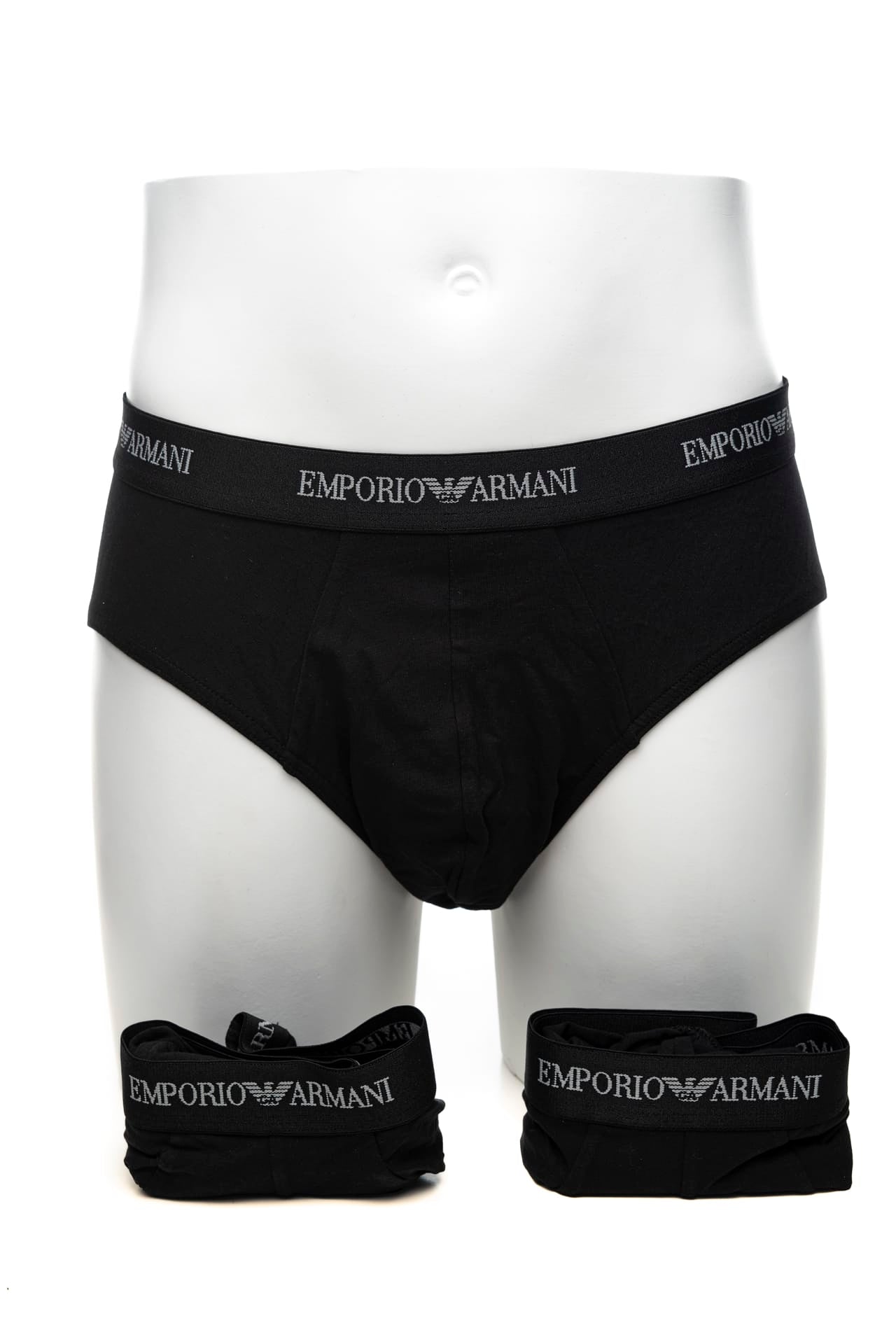 Slip Emporio Armani Brief 3 Pack Stretch Cotton Da Uomo Nero El Nero In Tessuto