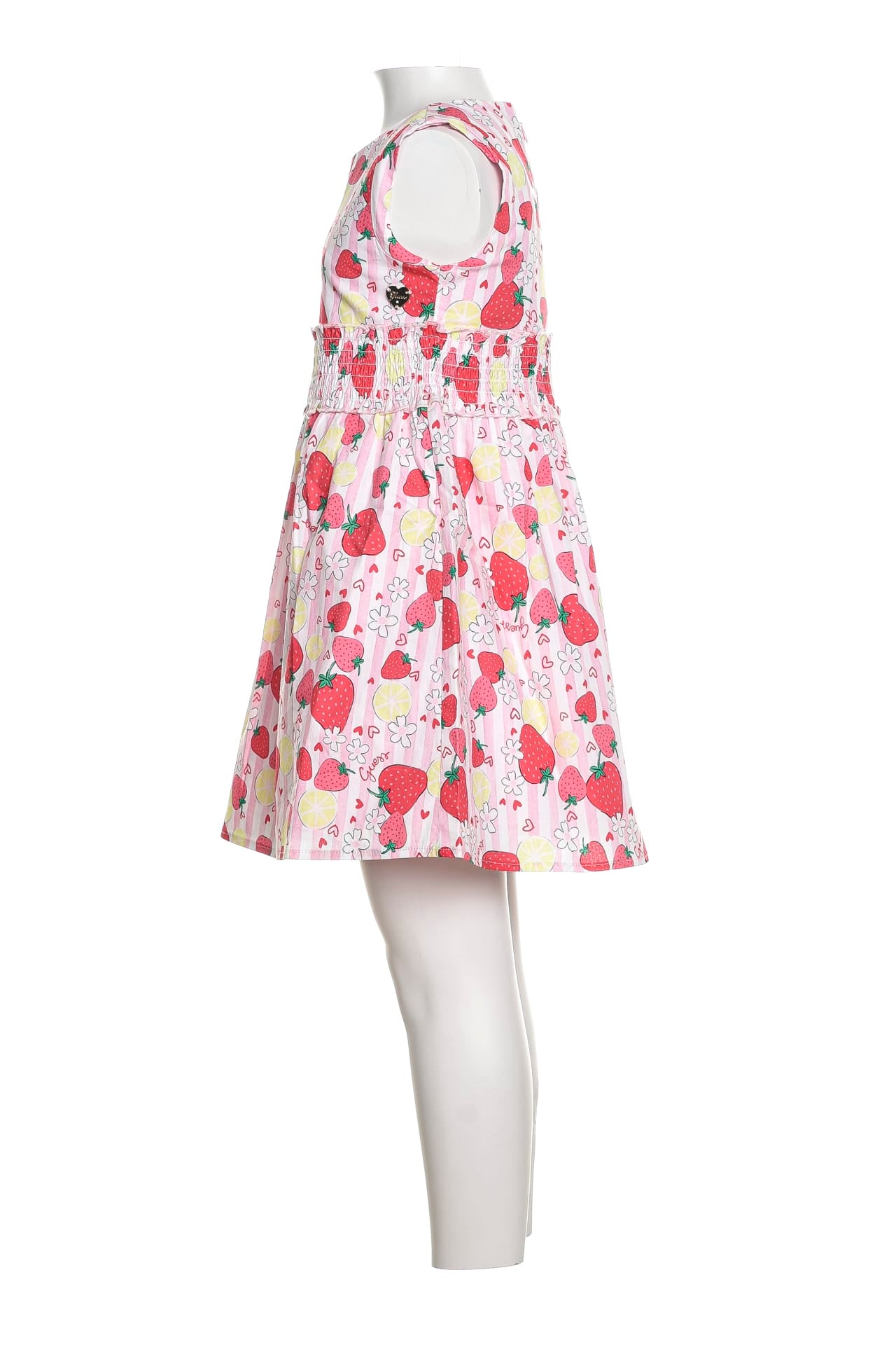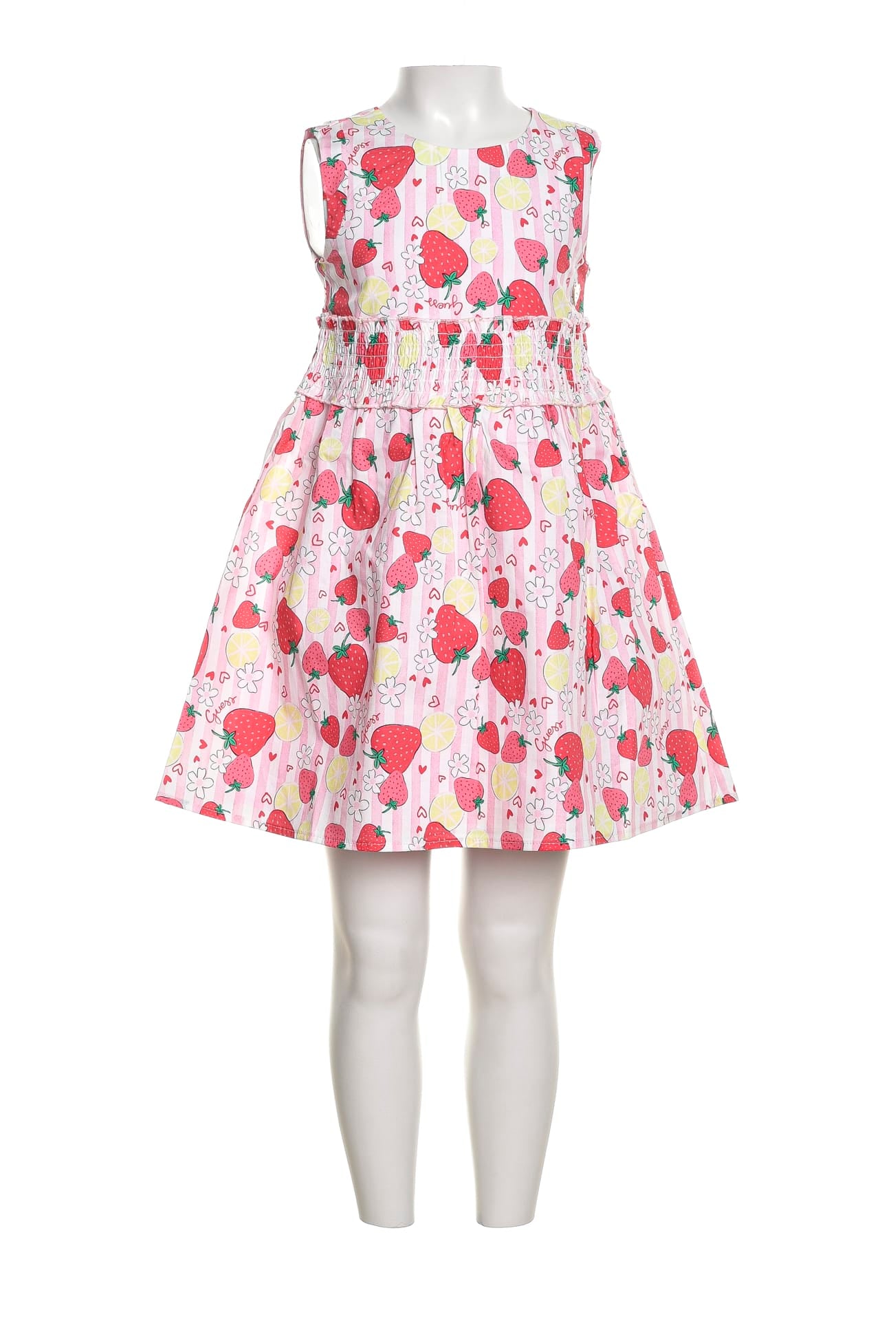Abito Corto Guess Strawberry Lemon Pop Dress da bambina in popeline di cotone stretch stampato in fantasia rigata fragole e limoni all over, con fodera, arricciatura elastica in vita, placchetta logo metallica cucita anteriormente, gonna ampia e chiusura full zip a scomparsa con gancetto posteriore