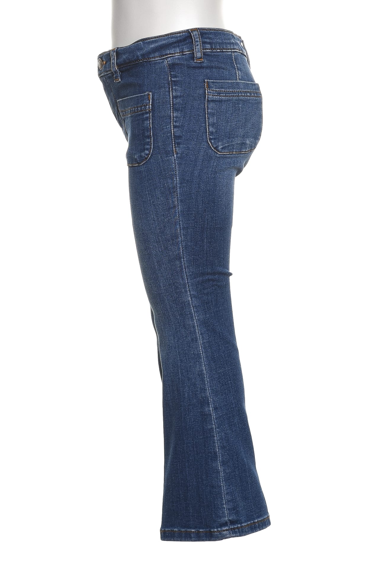 Jeans Guess Fl Stch Pkt Sign da bambina in denim stretch di cotone e poliestere sottoposto a trattamento per un aspetto vissuto, flared fit con tasche a toppa anteriori e posteriori di cui una ricamata con firma logo, vita regolabile internamente da elastico e bottone, chiusura zip a scomparsa e automatico