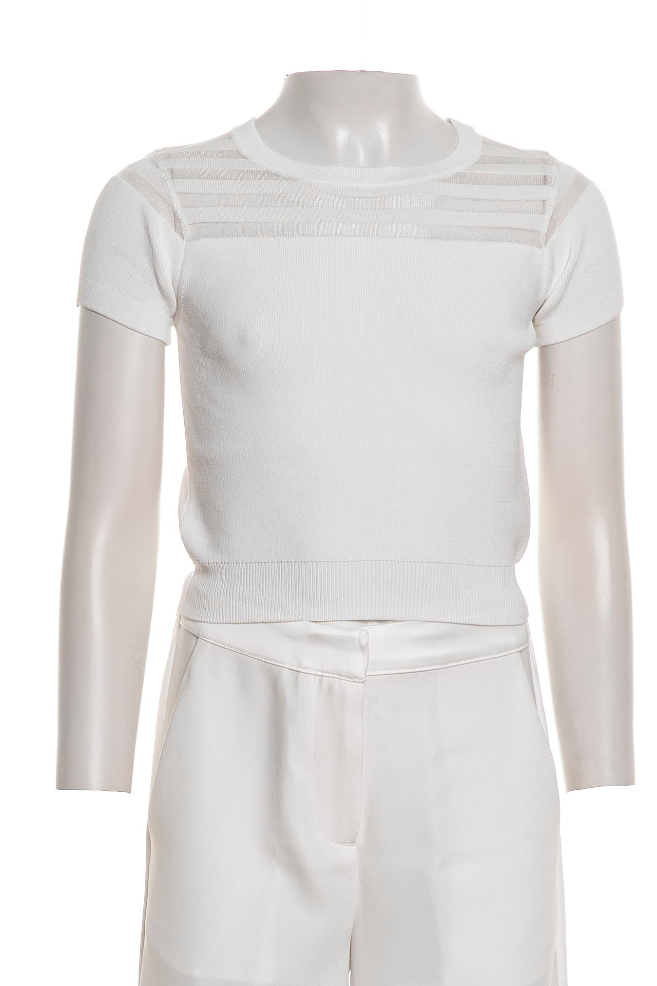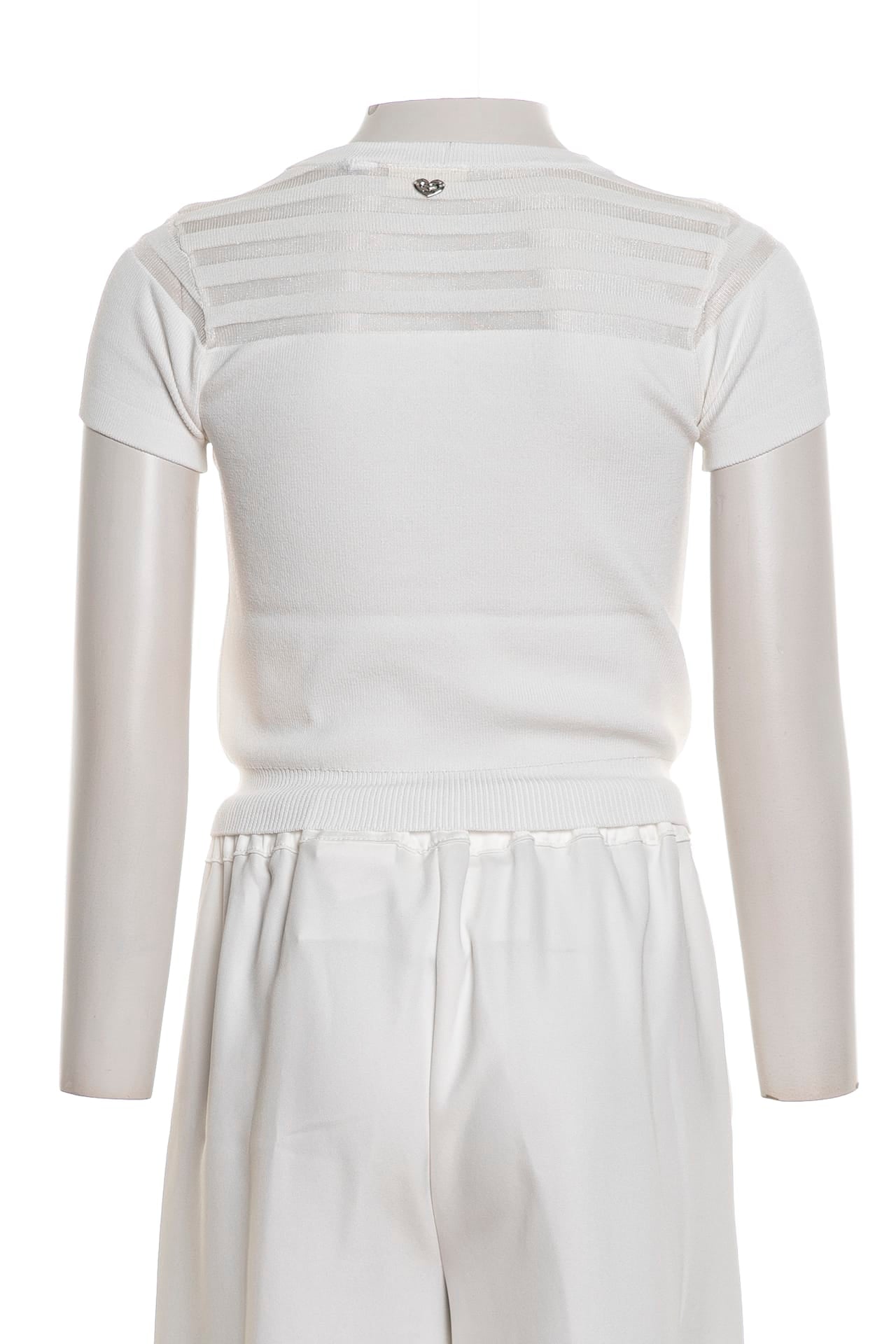 T-Shirt Sarabanda Pure Elegance Knit da bambina in filato rasato di viscosa e poliammide, a manica corta, con girocollo, polsini e cannolè a costine e inserti in mesh nella parte superiore del capo
