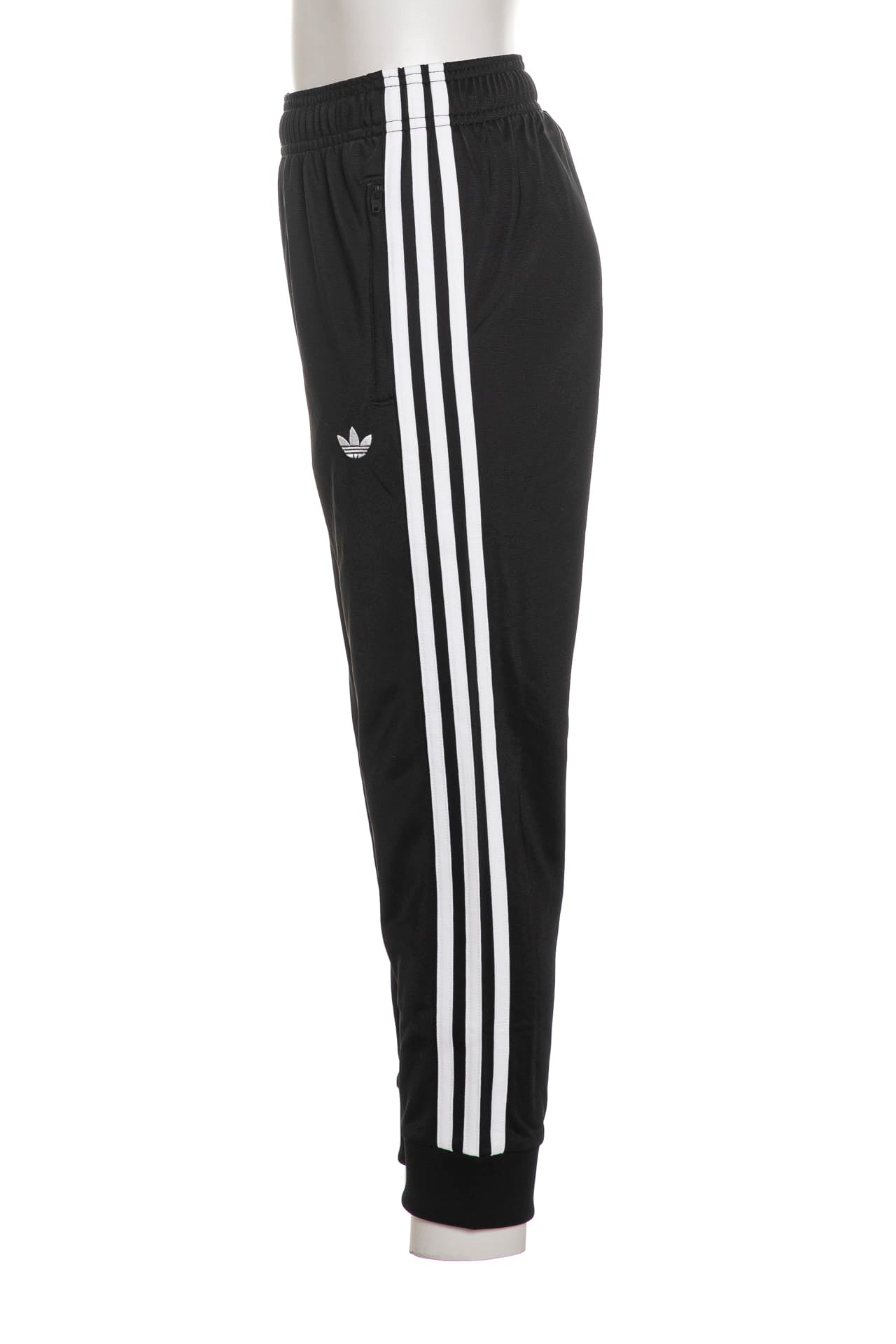 Pantalone tuta Adidas Originals Classic Lg Tr da bambino in tessuto acetato di poliestere riciclato, modello jogger, con elastico e coulisse interna in vita, tasceha filo con zip nascosta, trifoglio istituzionale ricamato a filo su una gamba, bande laterali a contrasto e polsini a costine