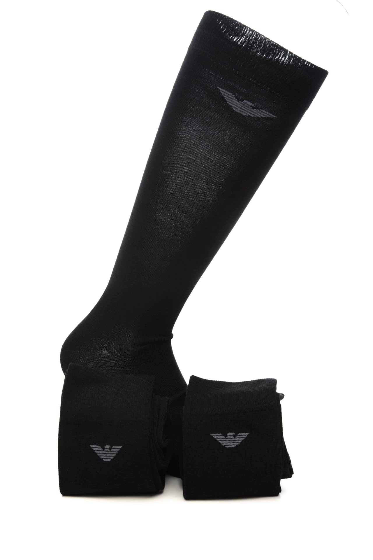 Calzini Lunghi Emporio Armani Long Socks Set 3 Pack Da Uomo Nero Monogramma Grigio In Filato Di Misto Cotone