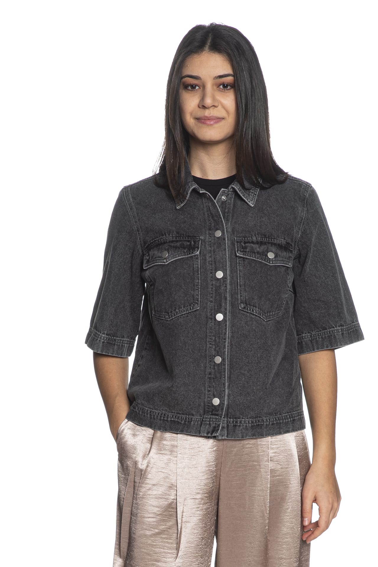 Giubbino Jeans Only Belle Shirt Da Donna Denim Grigio Scuro