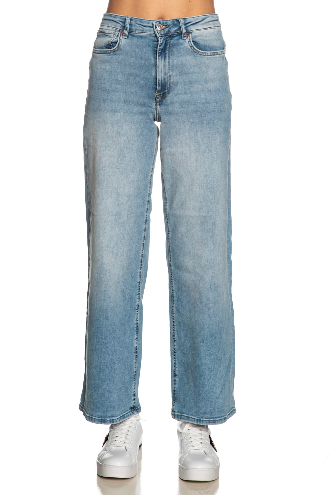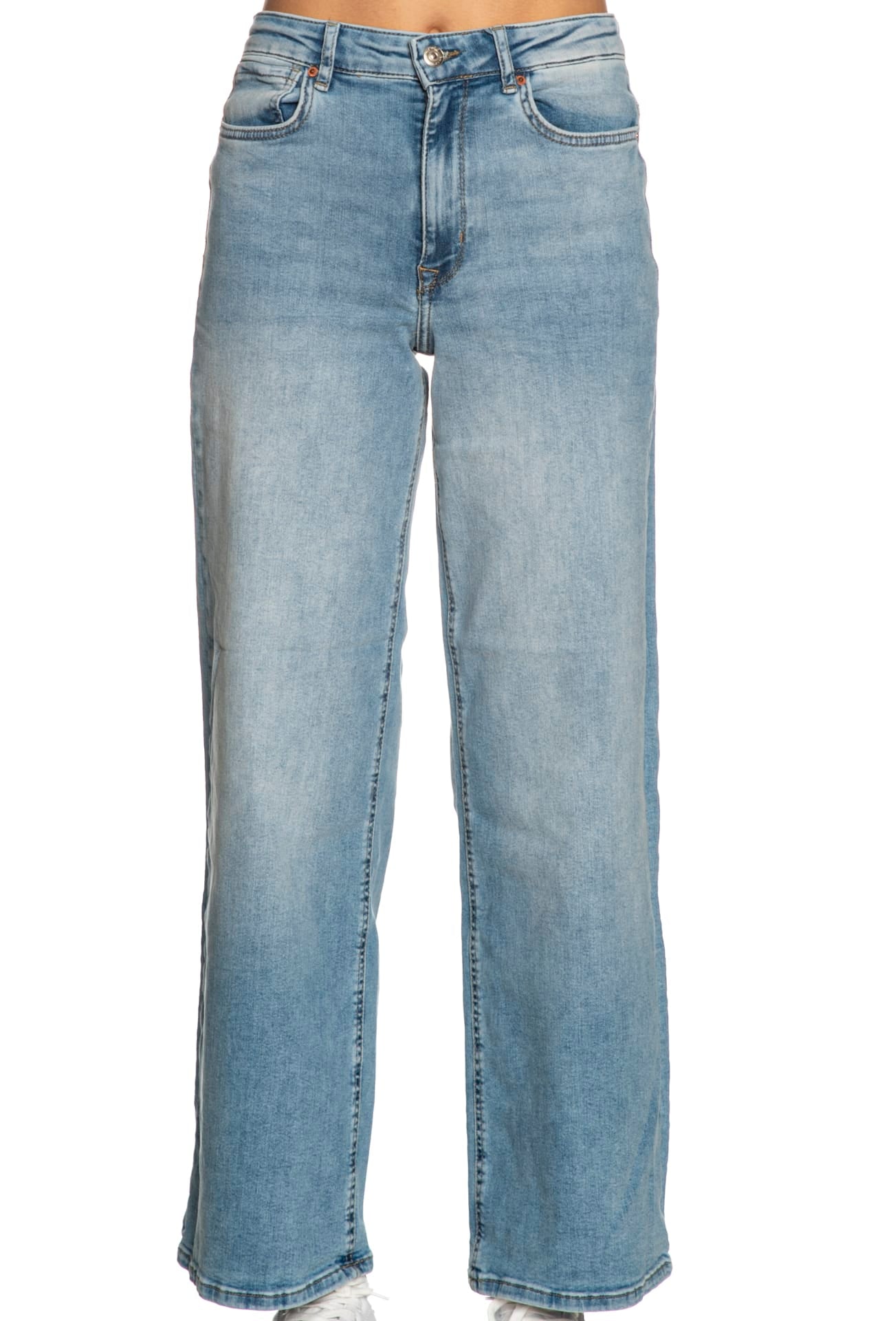 Jeans Only Madison Blush da donna in denim trattato per una finitura used, modello cinque tasche wide fit a vita alta, con chiusura zip