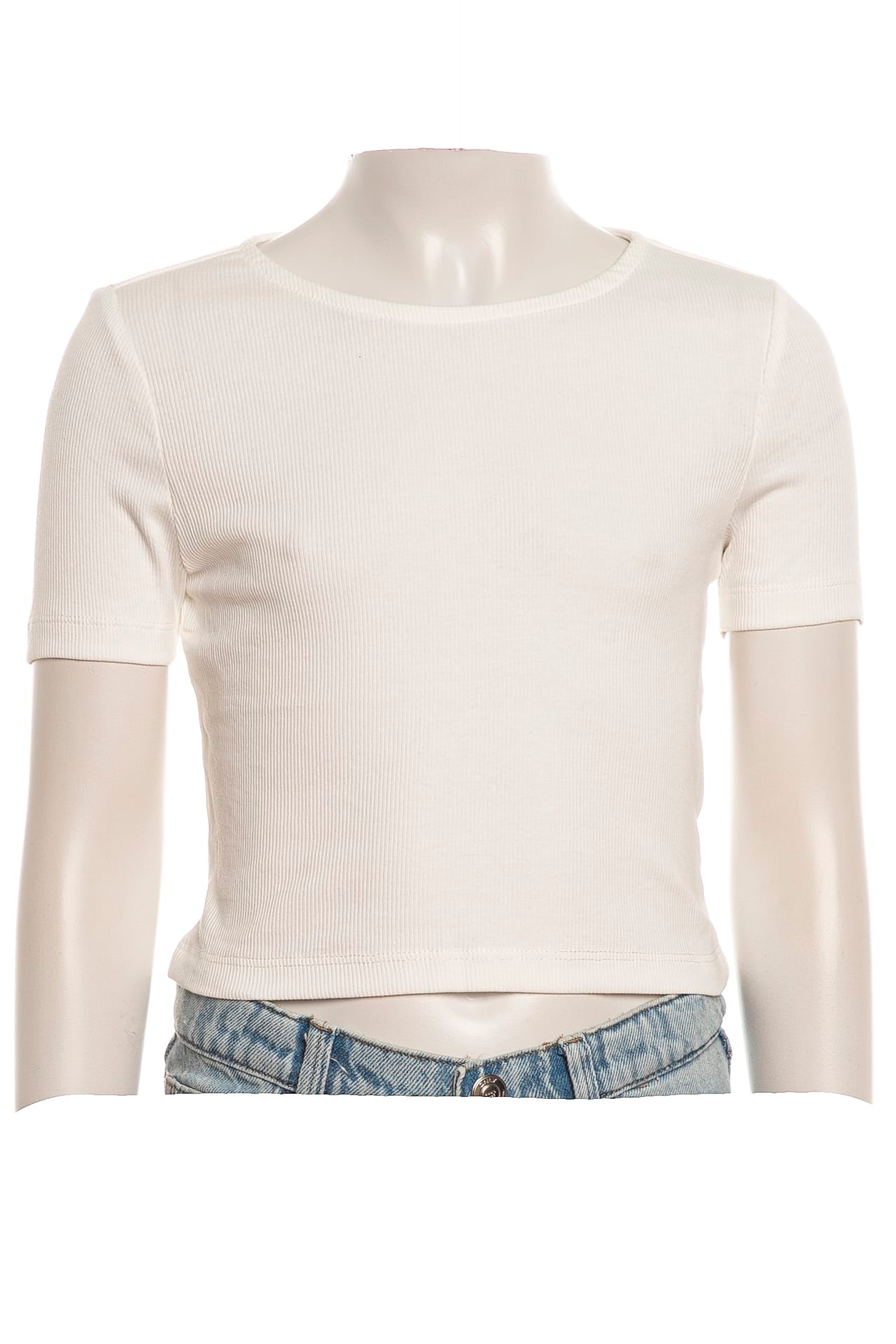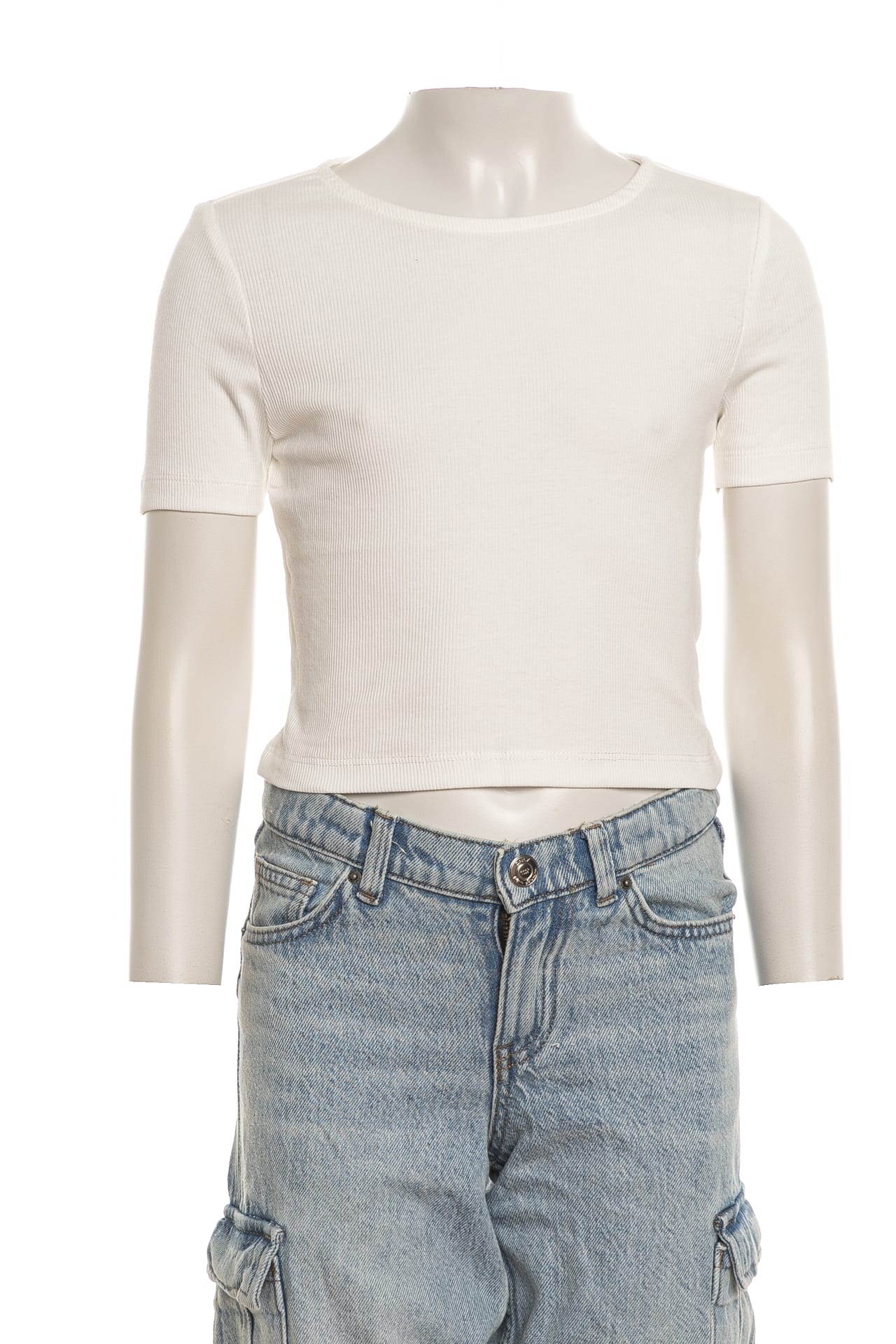 T shirt Kids Only Antonia da bambina in jersey stretch di cotone a costine, cropped fit girocollo a manica corta, con finte fibbie a cuore in strass su cut out sulla schiena