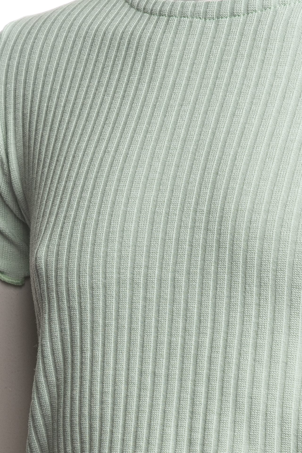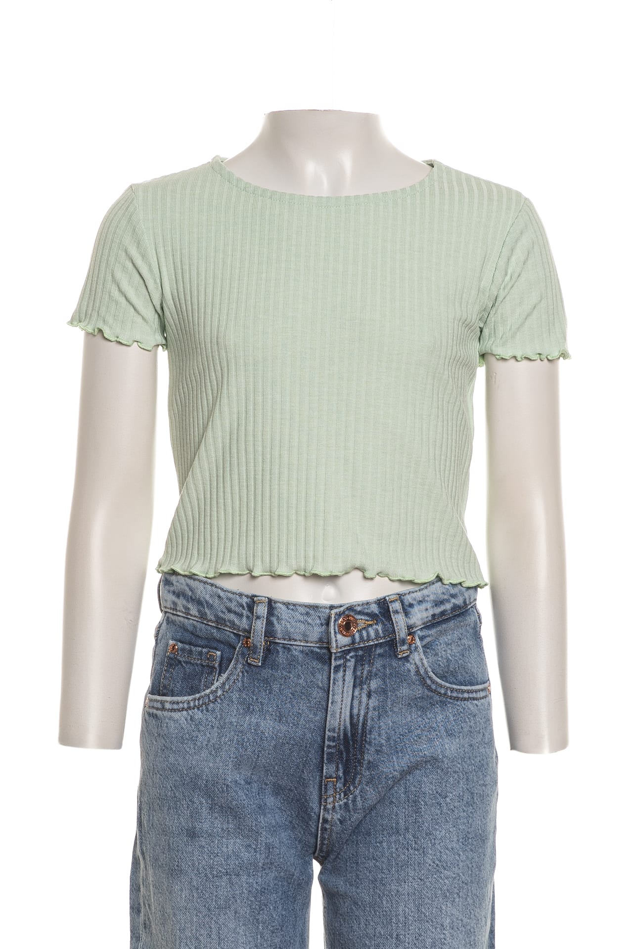 T shirt Top Kids Only Nella Yunior da bambina in filato stretch a costine di misto poliestere e viscosa, corta, girocollo, con bordi grezzi arricciati alle maniche corte e sul fondo