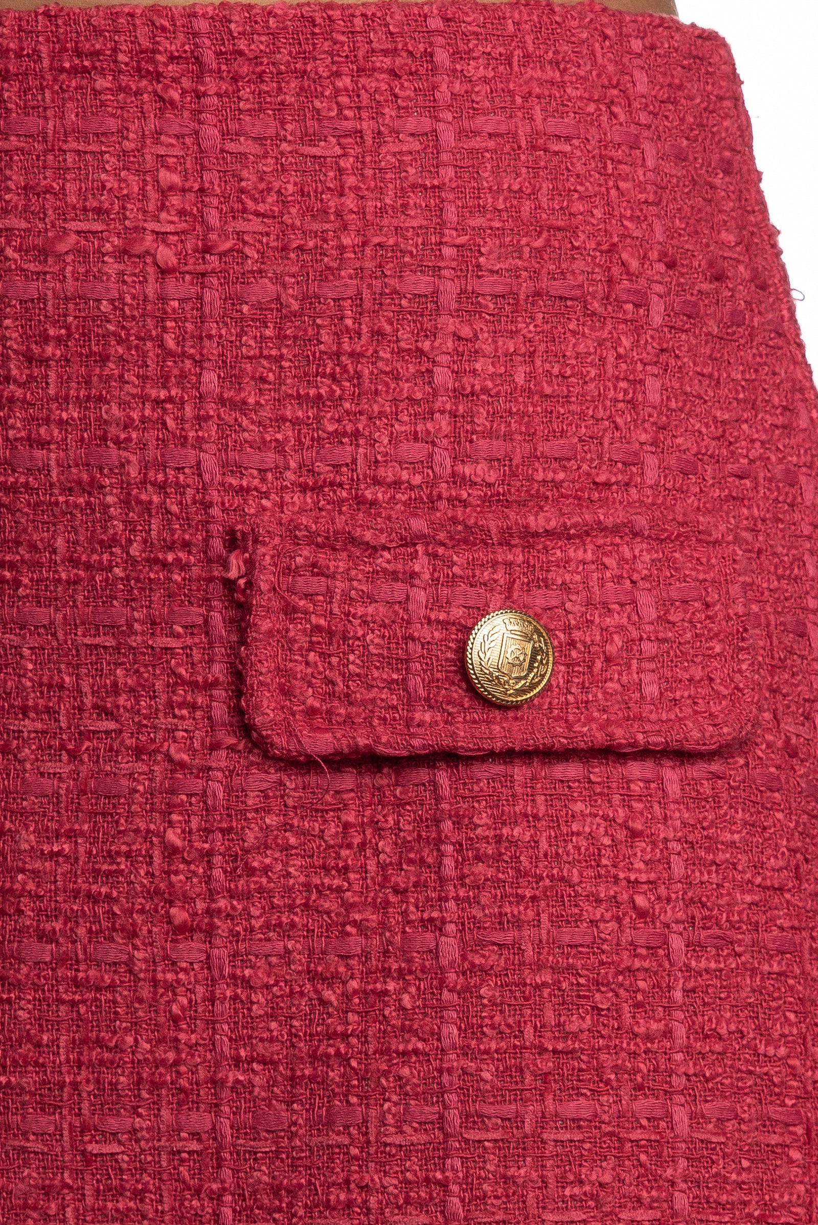 Gonna corta Only Mody da donna in tweed bouclè di poliestere, con chiusura zip posteriore a scomparsa e finte tasche anteriori con patta e bottone operato stile militare in metallo dorato