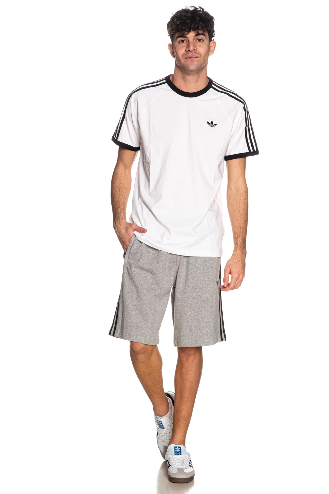 Bermuda Adidas Originals 3s Sho Fr Te da uomo in tessuto garzato di cotone, dalla vestibilità regolare, con iconiche strisce laterali a contrasto, coulisse regolabile internamente da cordino, tasche a filo e logo ricamato a filo su una gamba
