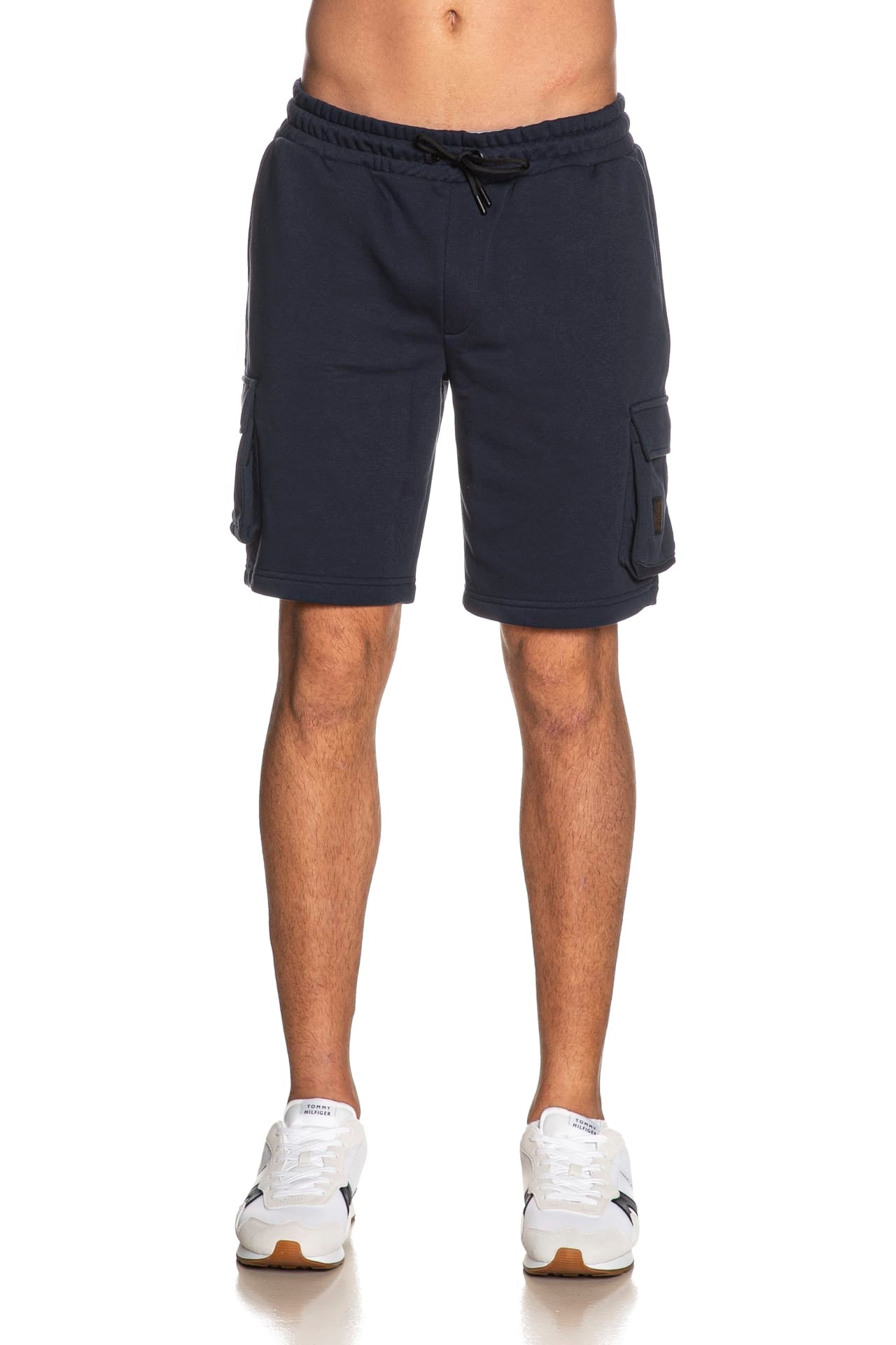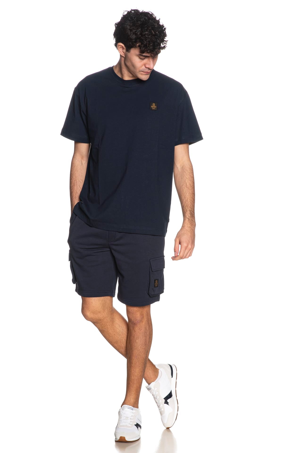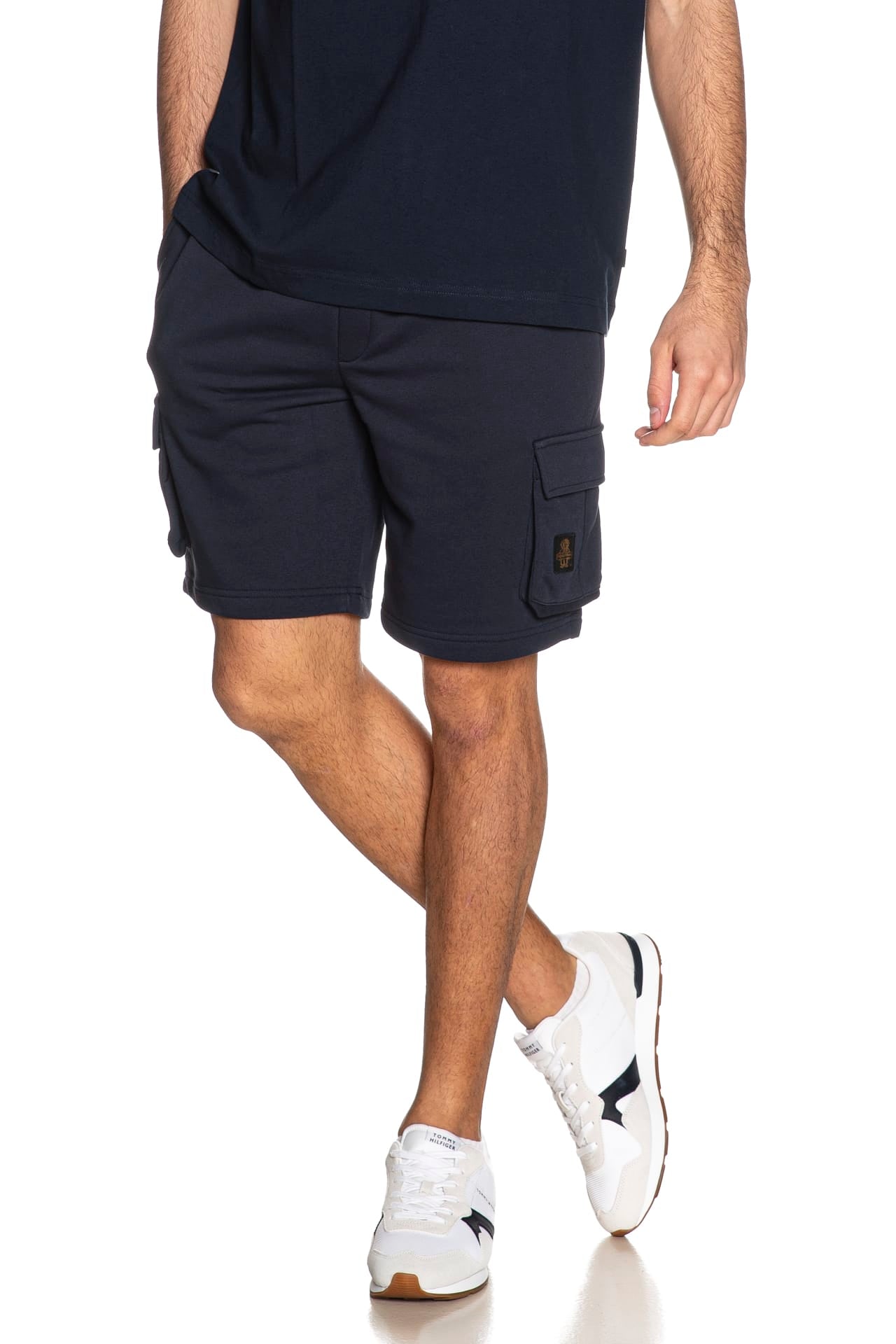 Bermuda Refrigiwear Lewis da uomo in felpa garzata di misto cotone e poliestere, modello jogger cargo, con elastico e coulisse in vita, finta patta cucita, tasche america e tasconi laterali con patta e piccolo tag logo in tessuto cucito su un lato